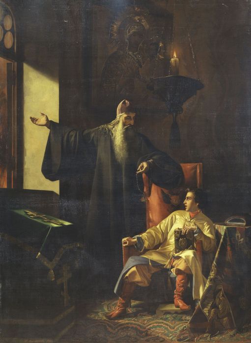 П.Плешанов. Царь Иоанн Грозный и иерей Сильвестр во время большого московского пожара 24 июня 1547 года. 1856 год