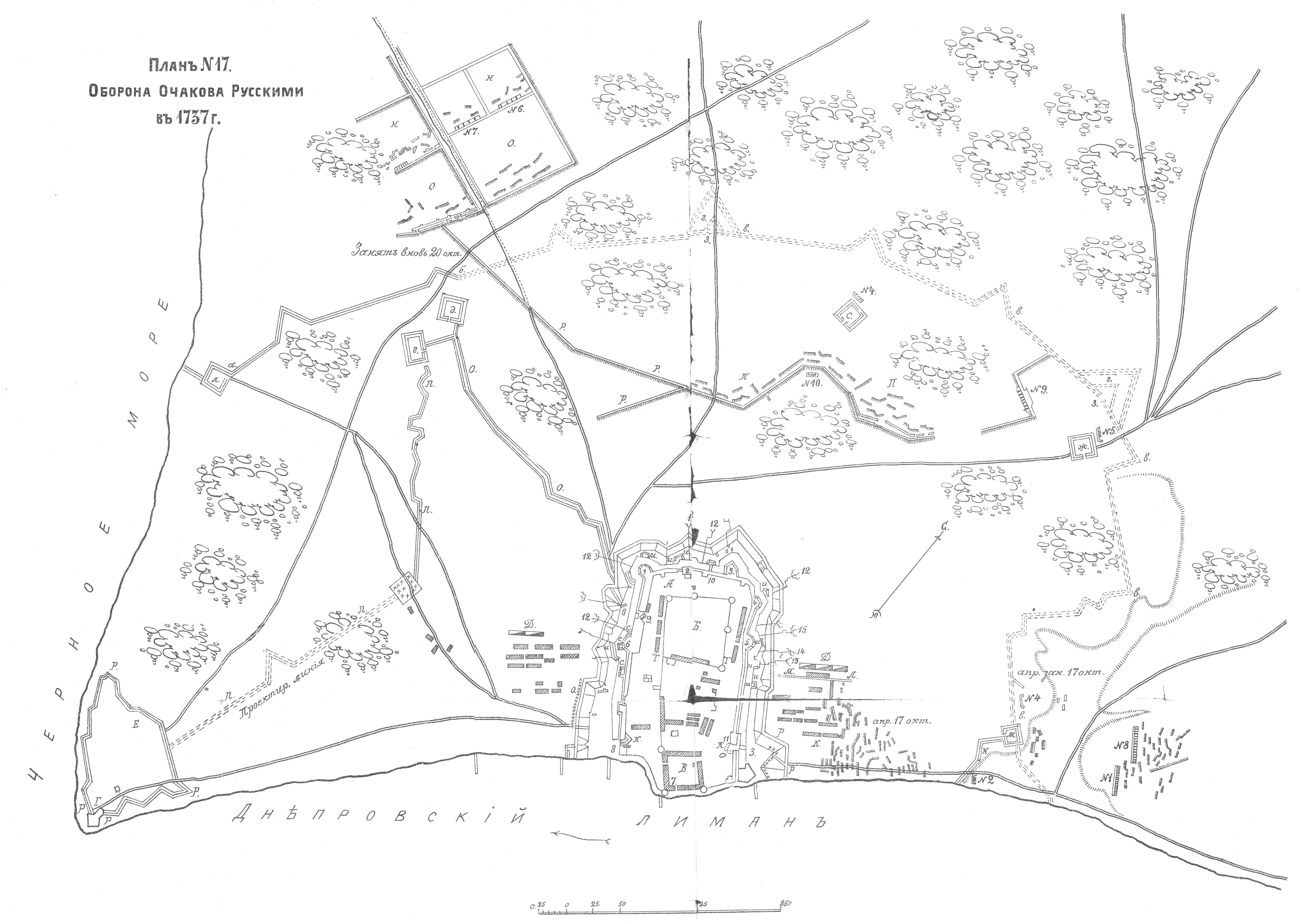 Читать подробнее об Обороне Очакова в 1737 году в издании Байов Алексей Константинович. Русская армия в царствование императрицы Анны Иоанновны. Война России с Турцией в 1736-1739гг. Том I. Первые три года войны.—СПб.,1906.