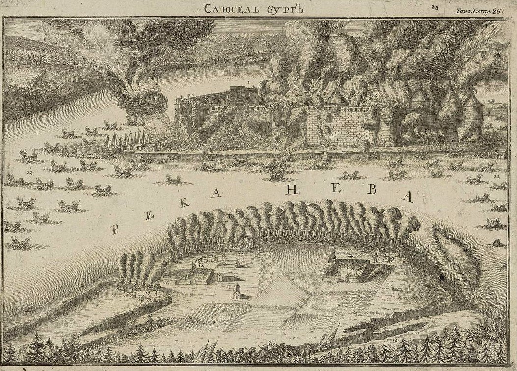 Осада Шлиссельбурга в 1702 г. оттиск XIX в. с гравюры перв.четв.XVIII в.