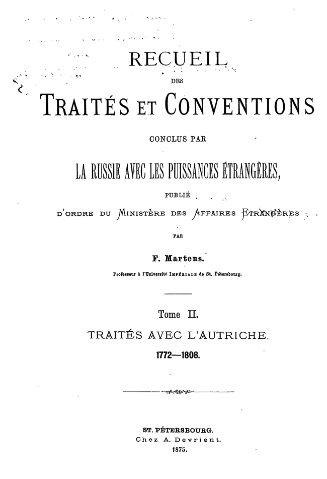 Собрание Трактатов и Конвенций, заключенных Россией с иностранными державами. Том II. Трактаты с Австрией.