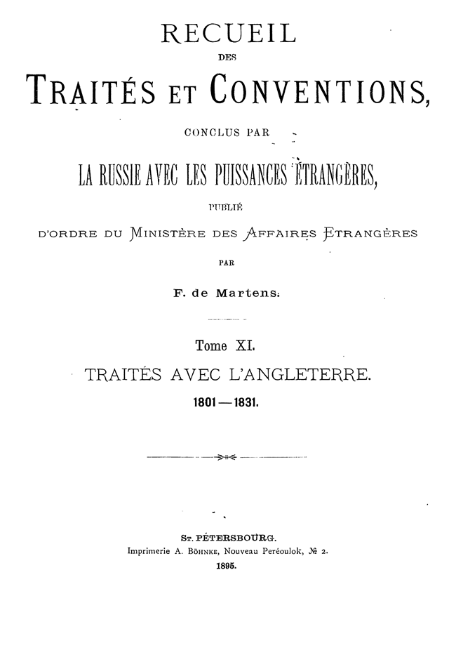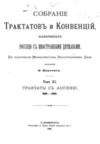 Собрание Трактатов и Конвенций, заключенных Россией с иностранными державами. Том XI. Трактаты с Англией.