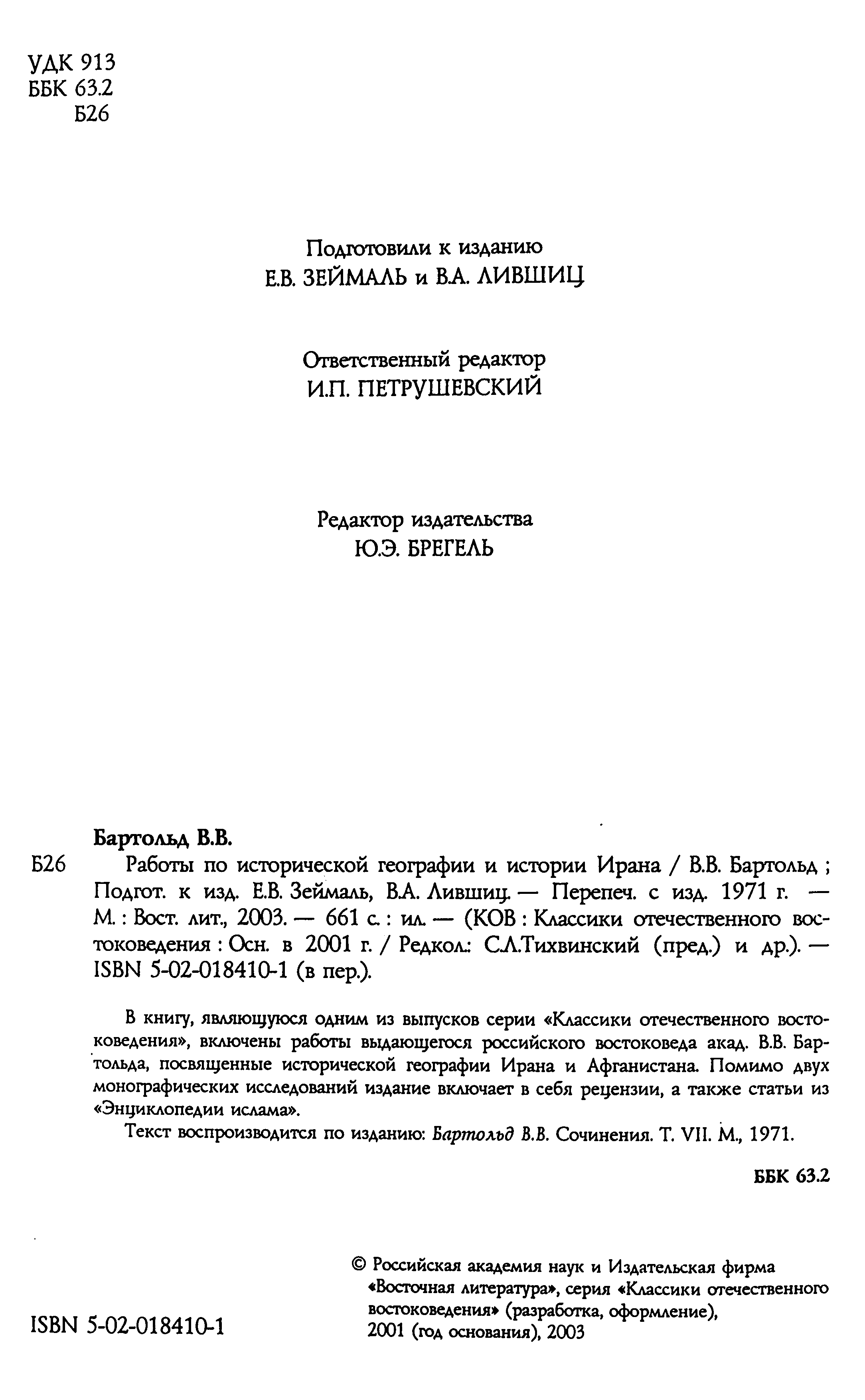 В книге, являющейся одним из выпусков серии `Классики отечественного востоковедения`, собраны основные историко-географические работы выдающегося российского востоковеда академика В.В.Бартольда. Они созданы в первые десятилетия XX в. и посвящены исторической географии Средней Азии, которой ученый уделял особое внимание на протяжении всей своей научной деятельности. Помимо двух монографий по проблемам комплексного исследования Аральского моря и орошения Туркестана в книгу вошли историко-географические статьи из `Энциклопедии ислама`, касающиеся обширной территории от Крыма и Поволжья до Монголии.
