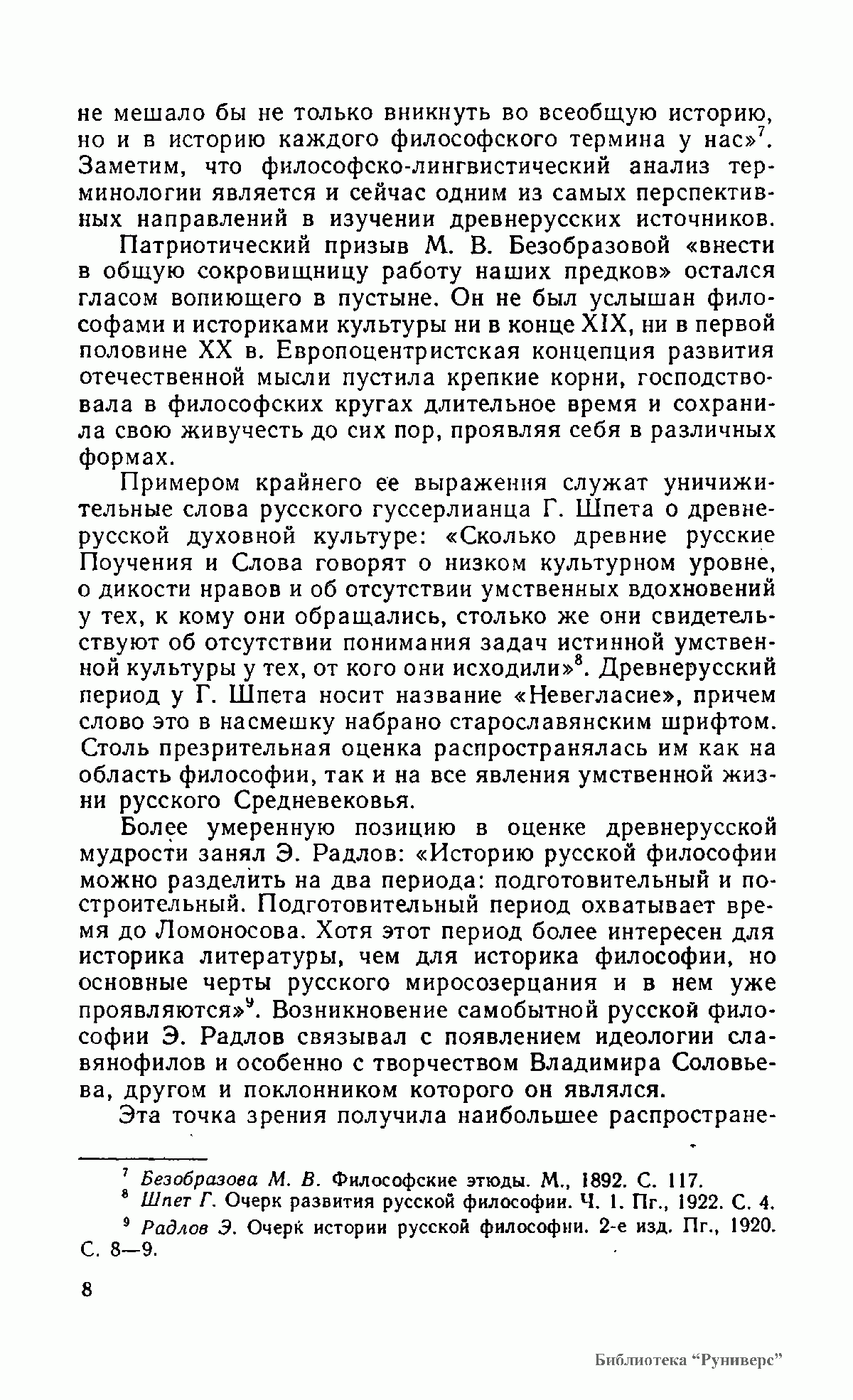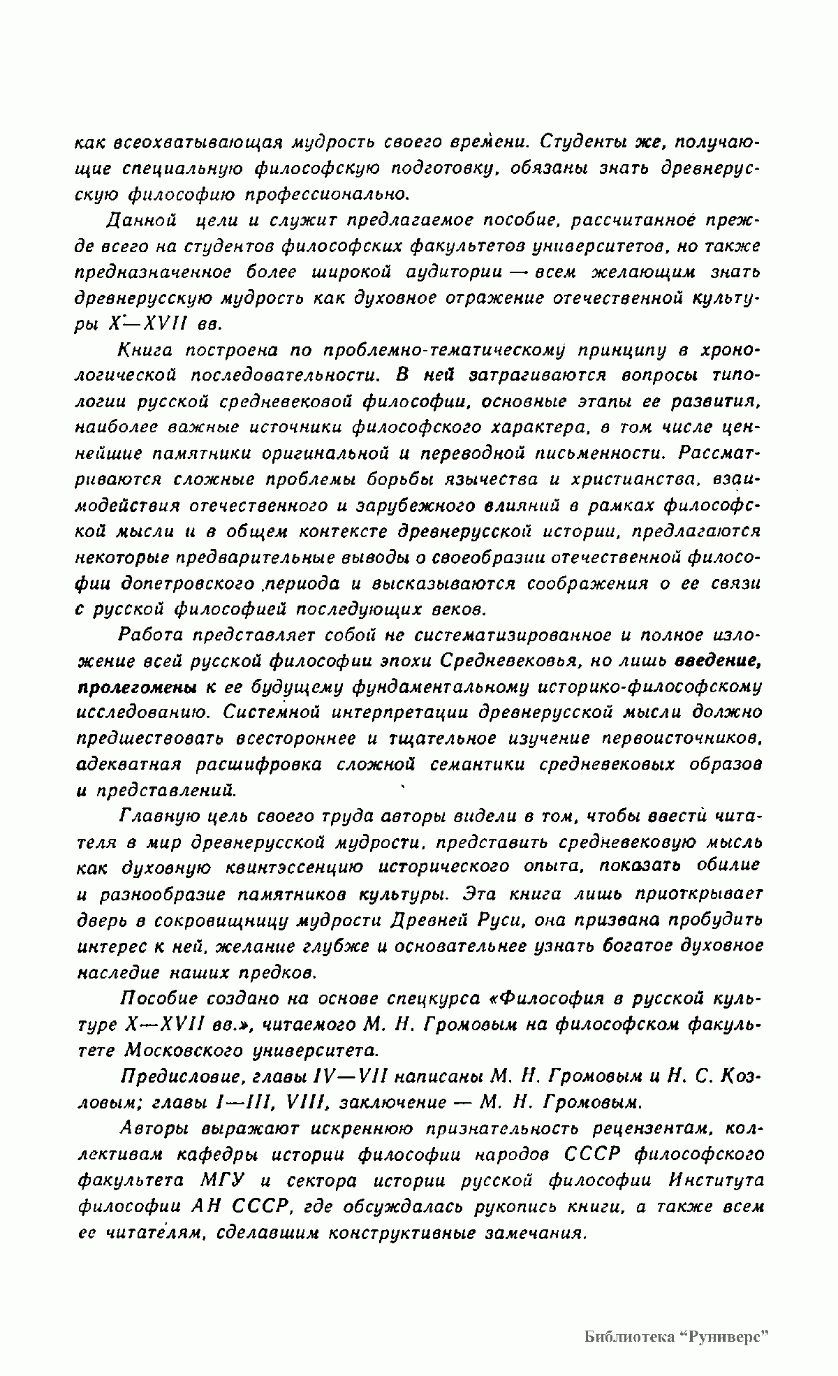 В пособии по истории русской философии в эпоху феодализма содержится информация о памятниках духовного творчества Древней Руси, о формах древнерусского мировоззрения, морального и эстетического сознания, религиозных и натурфилософских представлениях, социально-политических и правовых идеях. Для студентов, изучающих историю философских идей в эпоху русского Средневековья, преподавателей, а также всех, интересующихся историей русской философской мысли.