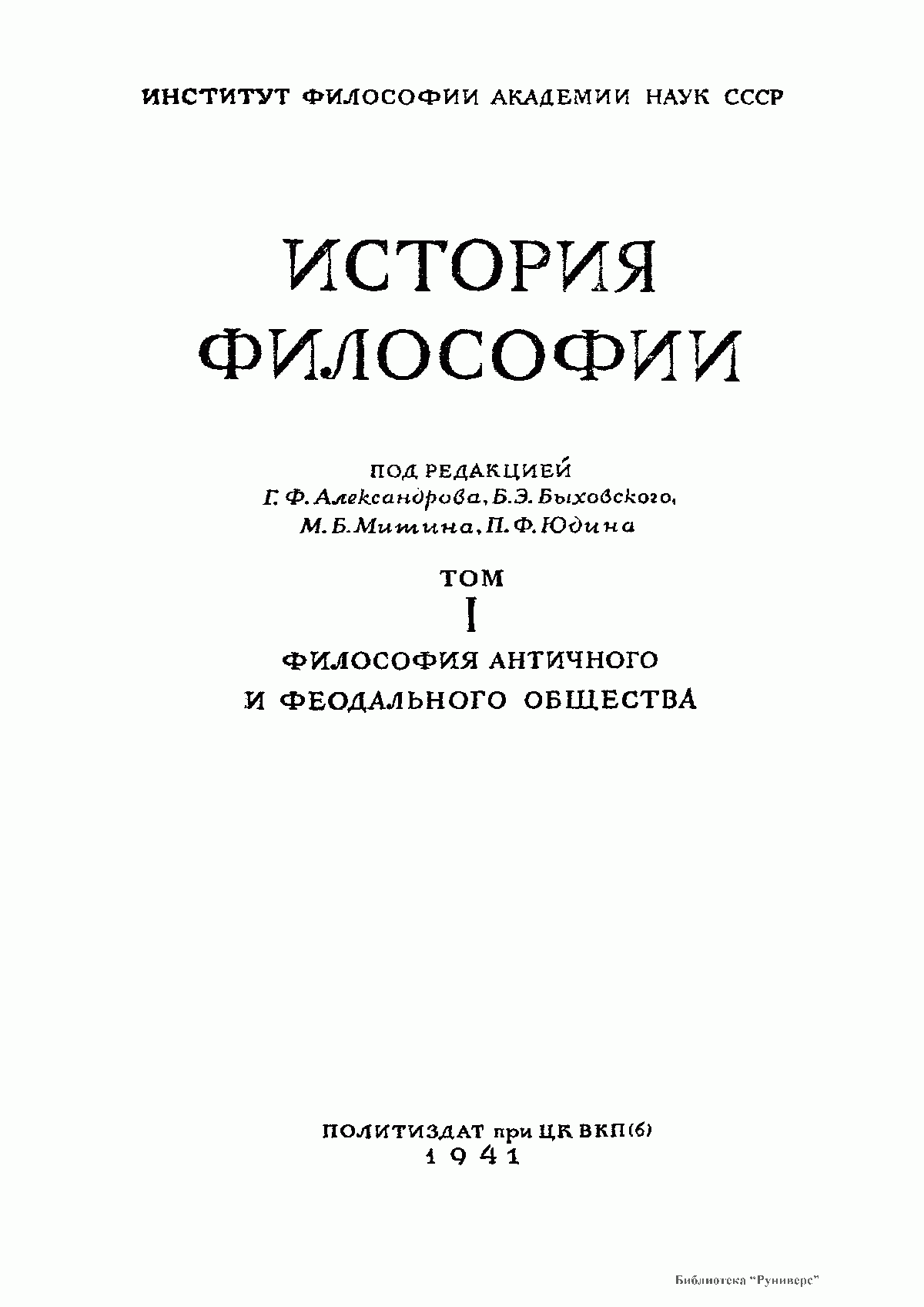Том I. Философия античного и феодального общества