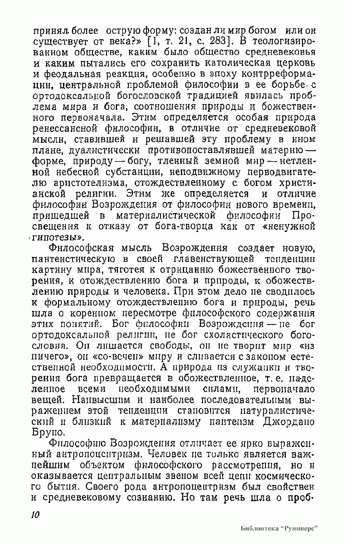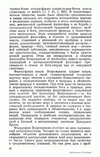 В книге анализируются философские и социологические взгляды Данте, Ф. Петрарки, Николая из Кузы, Леонардо да Винчи, Н. Коперника, М. Монтеня, Дж. Бруно, Т. Кампанеллы, Г. Галилея и др. Работа основана на многочисленных источниках, прежде всего на подлинных текстах философов XIV—XVI вв., по большей части не переводившихся на русский язык; она содержит аргументированную критику буржуазно-идеалистических и клерикальных истолкований философского наследия эпохи Возрождения.