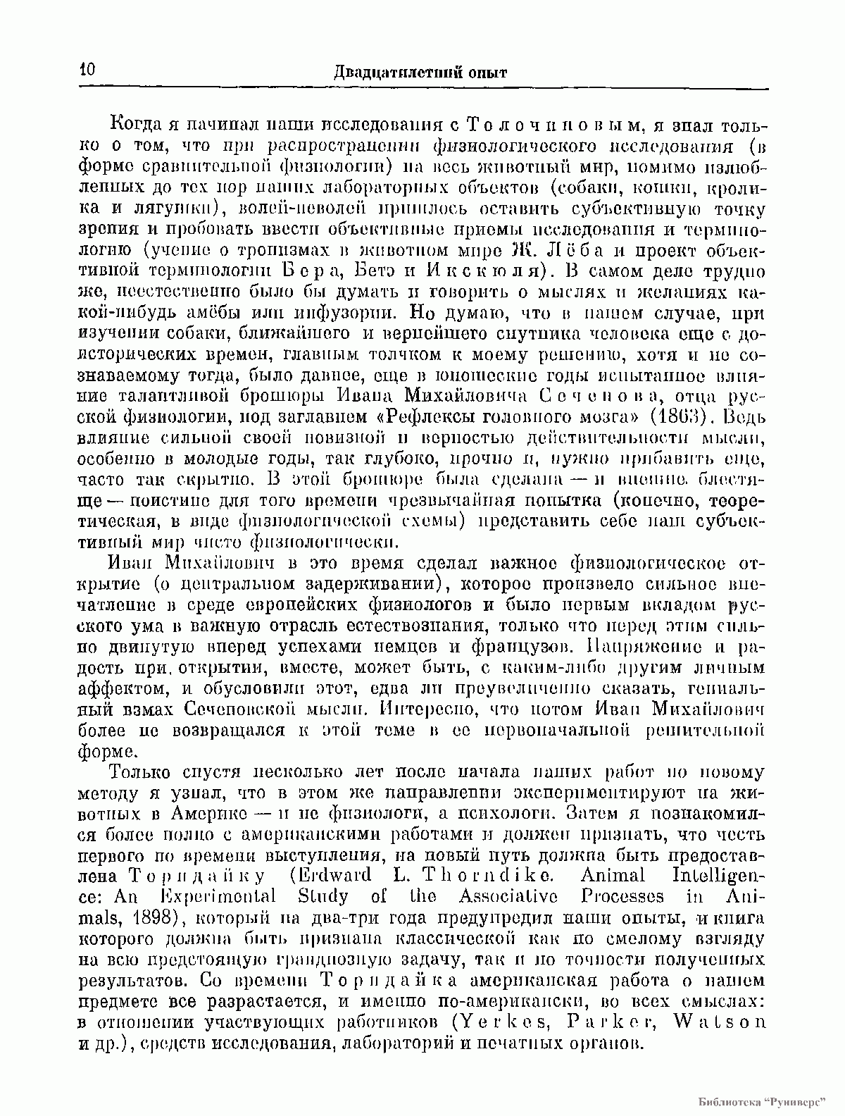 Двадцатилетний опыт объективного изучения высшей деятельности (поведения) животных