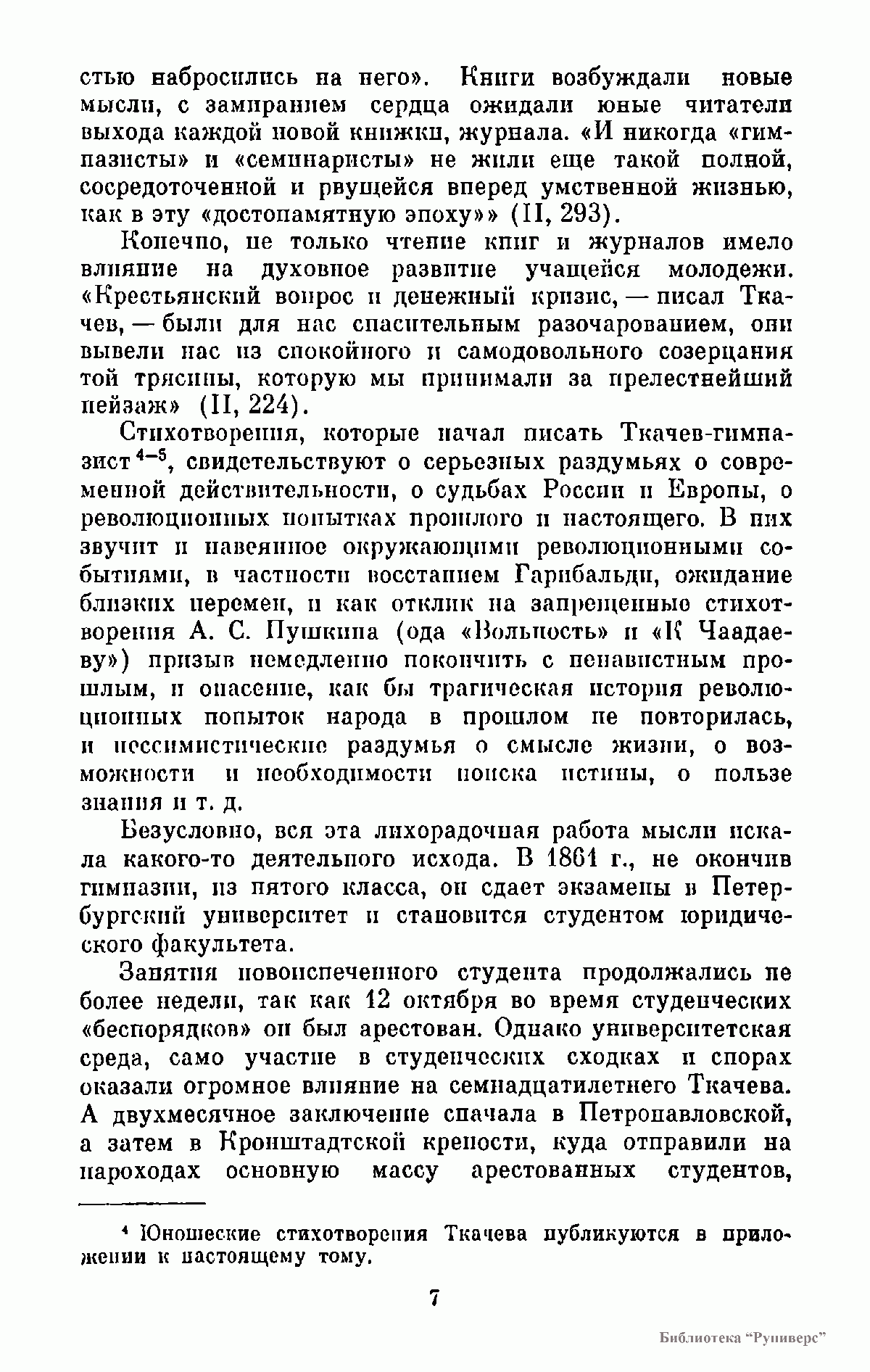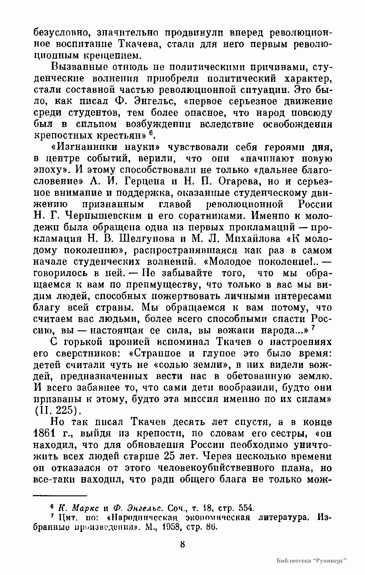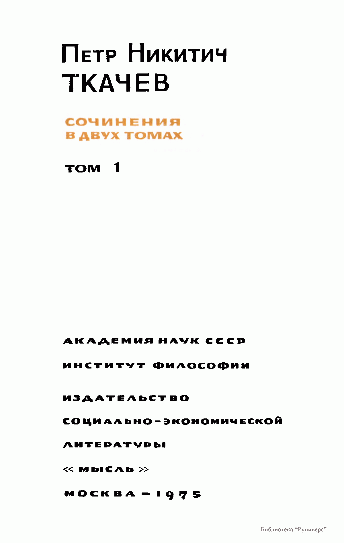 В первом томе собрания сочинений помещены произведения по философии, социологии, эстетике, педагогике и т. д., написанные П. Н. Ткачевым на родине в 60 — начале 70-х годов прошлого века. Значительная часть этих работ была напечатана лишь в журналах. В приложении даются юношеские стихи П. Н. Ткачева из его рукописного наследия. Во второй том включены произведения по философии, социологии, этике, истории, психологии, педагогике и т.д., а также основные программные статьи из органа «якобинского» течения в русском революционном народничестве журнала «Набат», написанные П. Н. Ткачевым в 70-х — начале 80-х годов XIX в. в эмиграции. Большинство произведений П. Н. Ткачева, напечатанных в журнале «Дело», ранее не переиздавались.