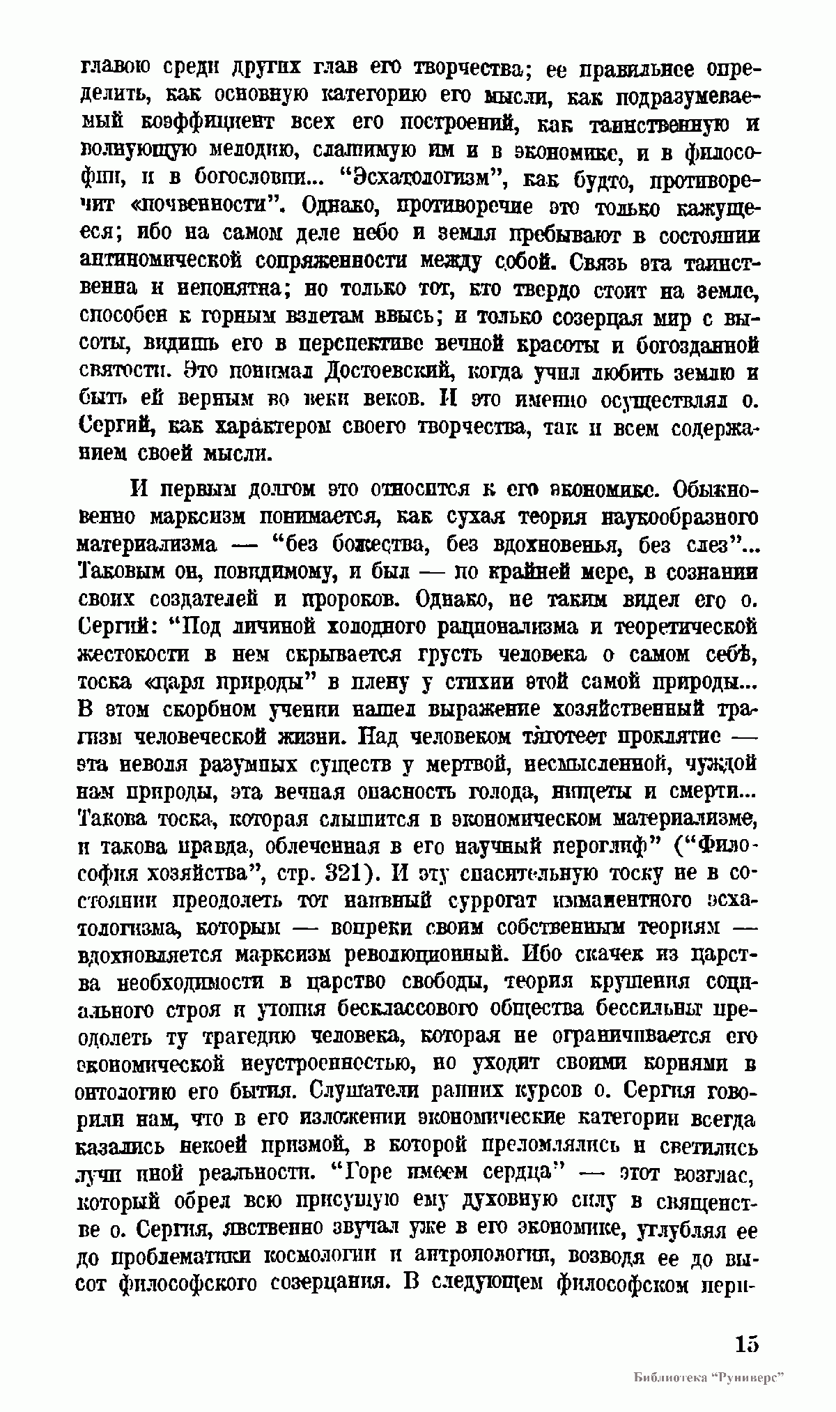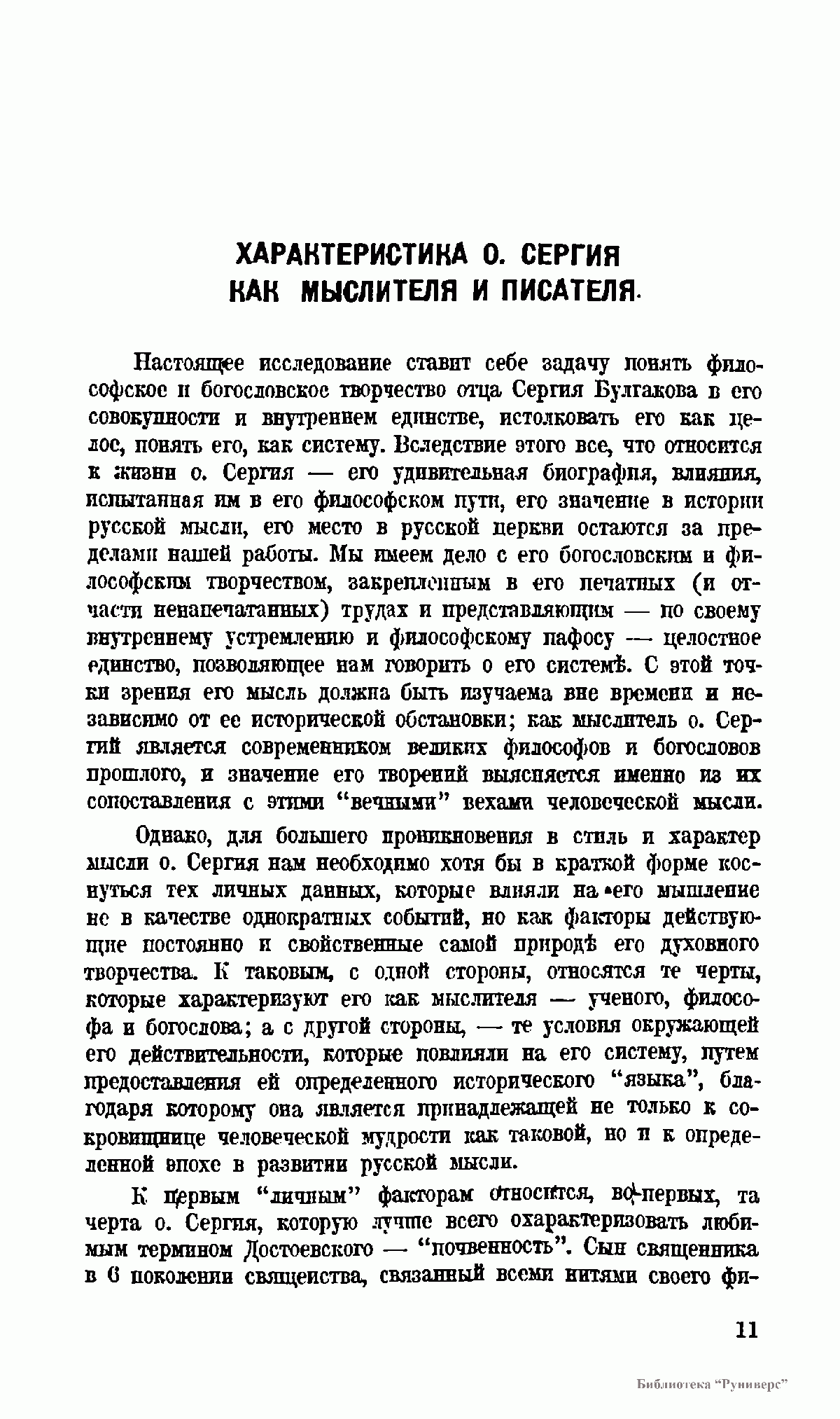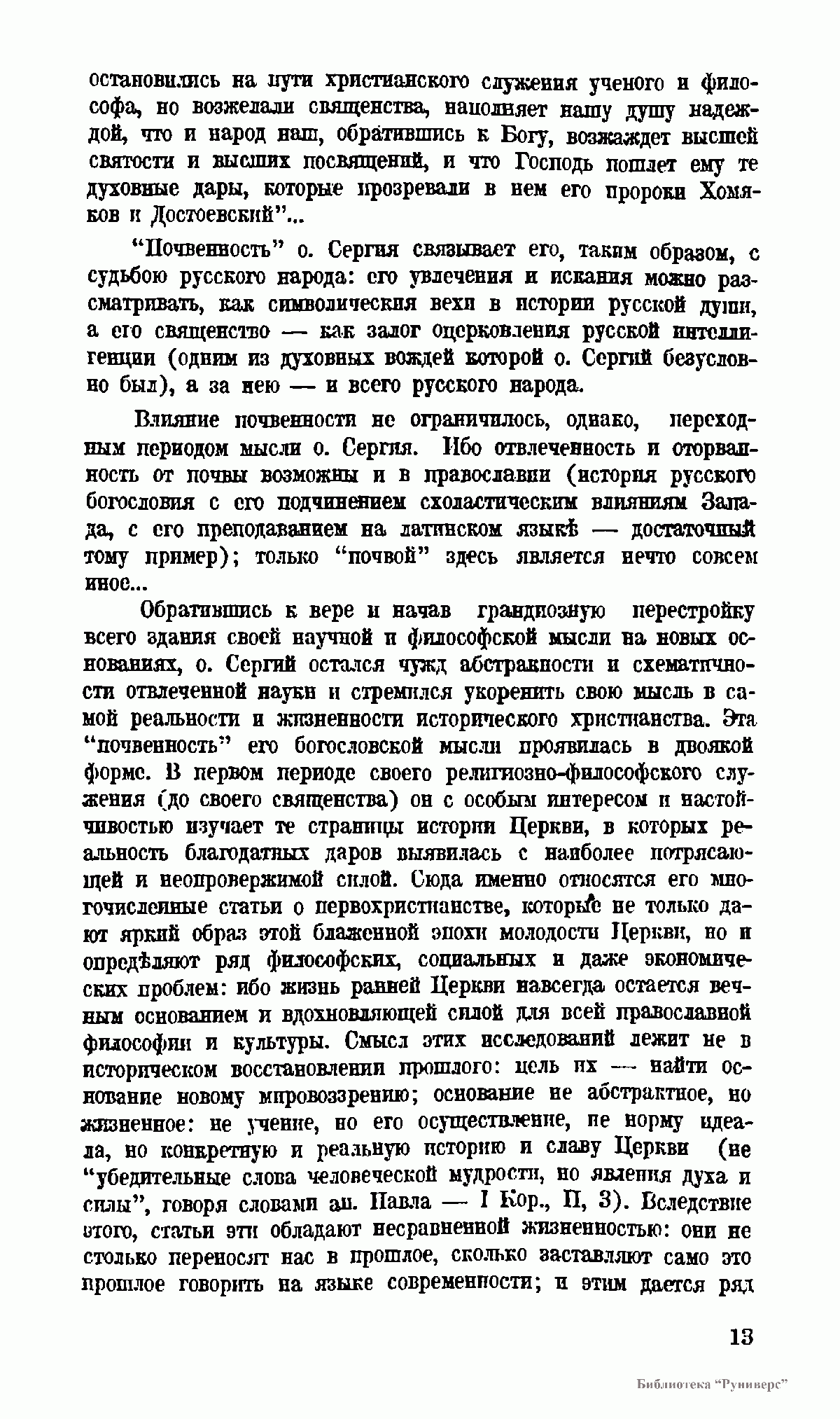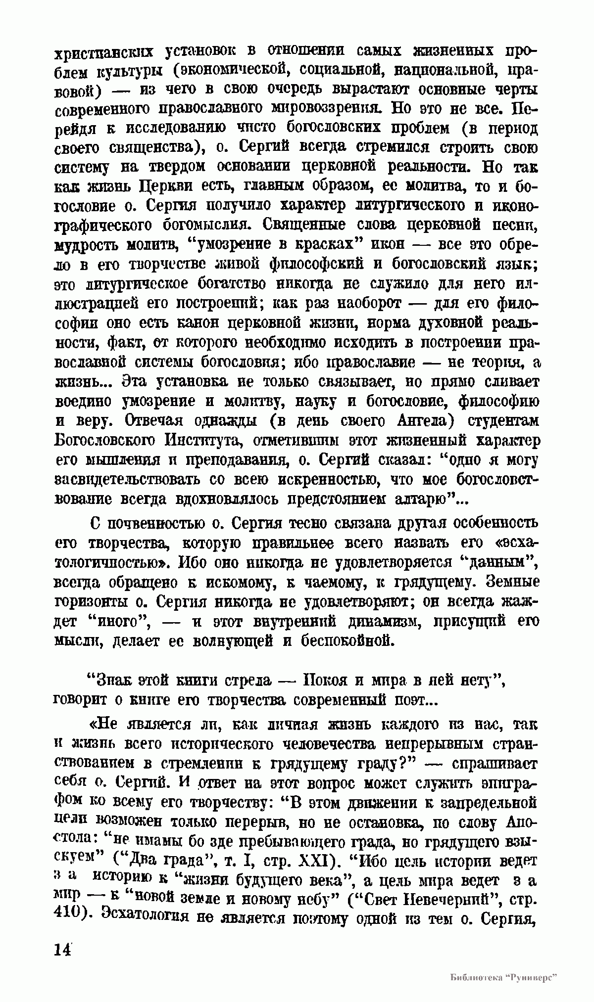 , излагая в сокращенной форме то, что содержится в многообразии его писаний. Но ни генезиса его мыслей, ни критики их, ни анализа влияний на о. Сергия других мыслителей читатель здесь не найдет; целью данной книги является только изложить систему