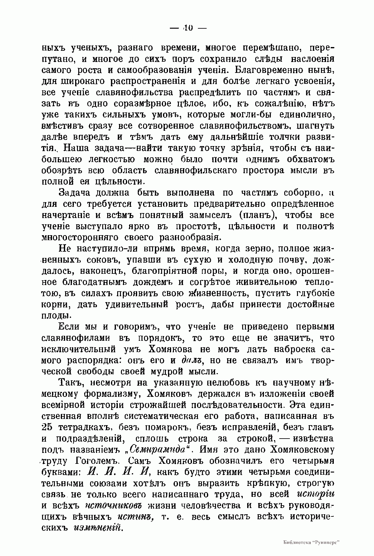 Два обстоятельства побудили автора издать исследование по "старому славянофильству": 1) то, что исследователи славянофильского любомудрия не привели его в строго соразмерный и обработанный уклад, который охватывал бы его учение целикомъ и со всех сторон; 2) что нет еще писателя, который сравнил бы славянофильство, как философское учение, в его целом, со всею совокупностью западно-европейской учености и определил точно, научно и философски: в чем заключается отличие основ восточного просвещения от начал западной культуры и цивилизации и где сосредоточивается вся философская суть этого различия. Решение этих двух вопросов — цель усилий Михаила Фердинандовича Таубе, который нe будучи вполне уверенным, что выполнил задачу с "желательною удовлетворительностью", тем не менее полагает, что его попытка поставить и разрешить хотя-бы приблизительно "коренные вопросы всемирного просвещеня", указанные славянофильством, можетъ быть полезна сама по себе.