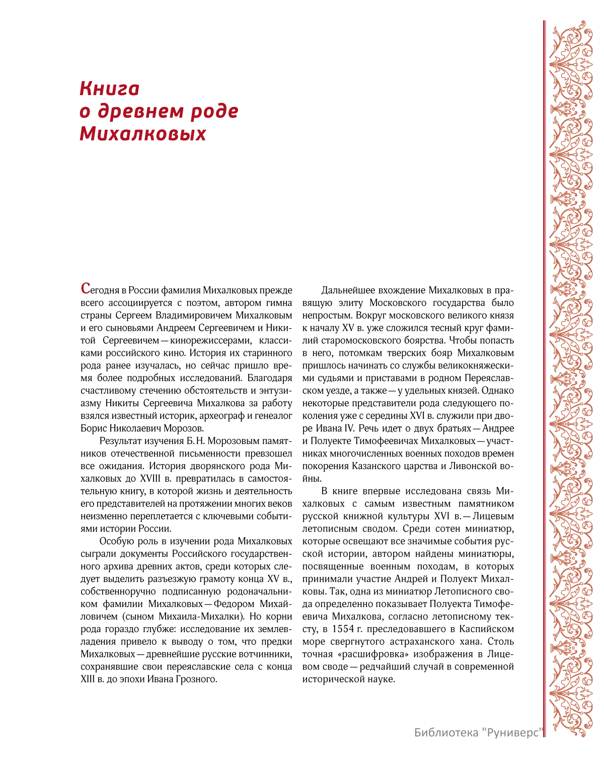 Книга об истории древнего рода Михалковых