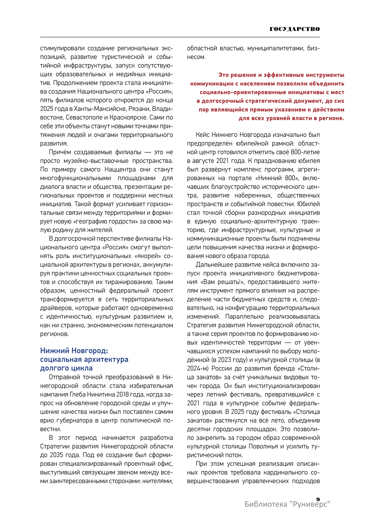 Материалы сборника призывают развивать креативные индустрии (КИ) как основу «экономики смыслов» и носители культурного кода, опираясь на традиционные духовно-нравственные ценности. Креативный класс рассматривается как новый партнёр государства и архитектор будущих ценностных моделей.