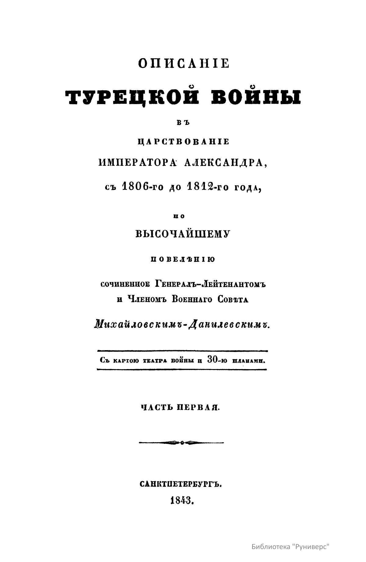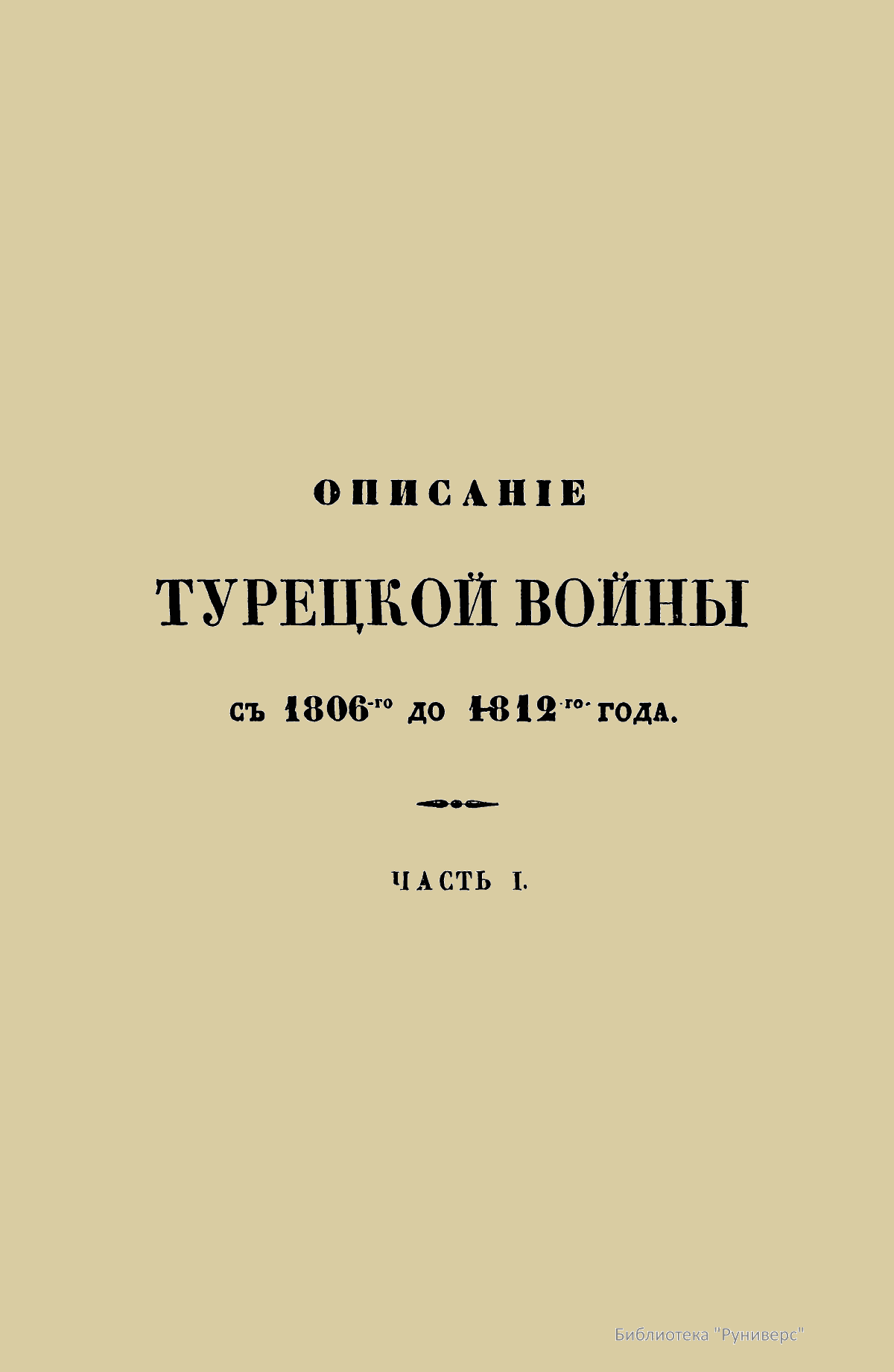 ОПИСАНІЕ ТУРЕЦКОЙ ВОЙНЫ въ ЦАРСТВОВАНІЕ ИМПЕРАТОРА АЛЕКСАНДРА, съ 1806-го до 1812-го года
