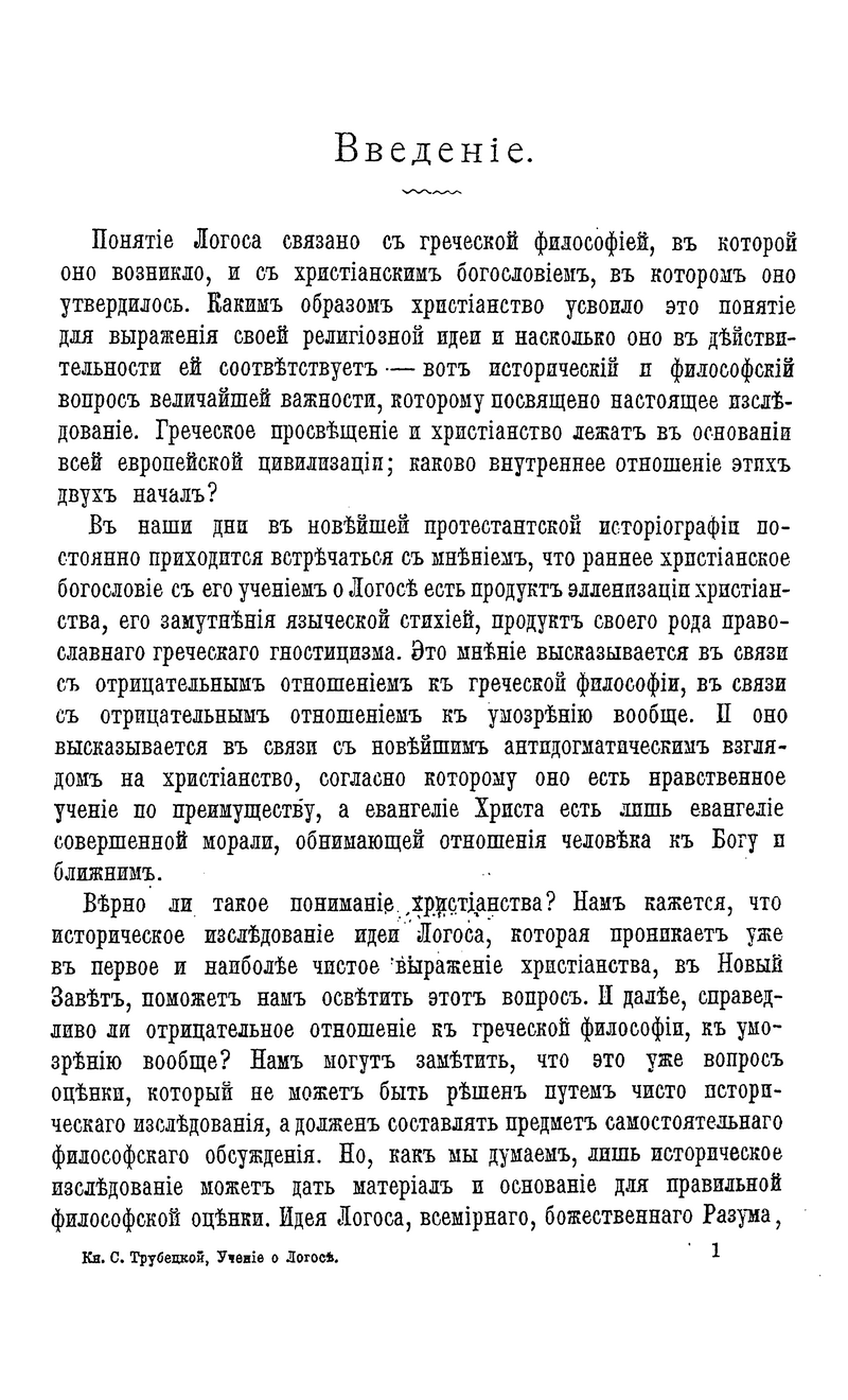 a:2:{s:4:"TEXT";s:962:"Докторская диссертация С. Н. Трубецкого посвящена понятию «логоса», возникшему в греческой философии и утвердившемуся в христианском богословии. Автор ставит цель выяснить, каким образом христианство, которое признает разум как объективное всемирное и сверхмирное начало, усвоило это понятие для выражения своей религиозной идеи и насколько оно в действительности ей соответствует. «Имеет ли какой-нибудь разумный смысл человеческая жизнь, и если да, то в чем он заключается? Имеет ли разумный смысл и разумную цель вся человеческая деятельность, вся история человечества и в чем этот смысл и цель? Имеет ли, наконец, разумную цель весь мировой процесс, имеет ли смысл существование вообще?» – вот главные вопросы, которые ставит философ и дает на них ответ. Эти вопросы рано или поздно ставит перед собой и современный читатель. Труд С. Н. Трубецкого поможет ему лучше понять и себя, и интеллектуальное прошлое человечества, его значимость для настоящего.";s:4:"TYPE";s:4:"text";}