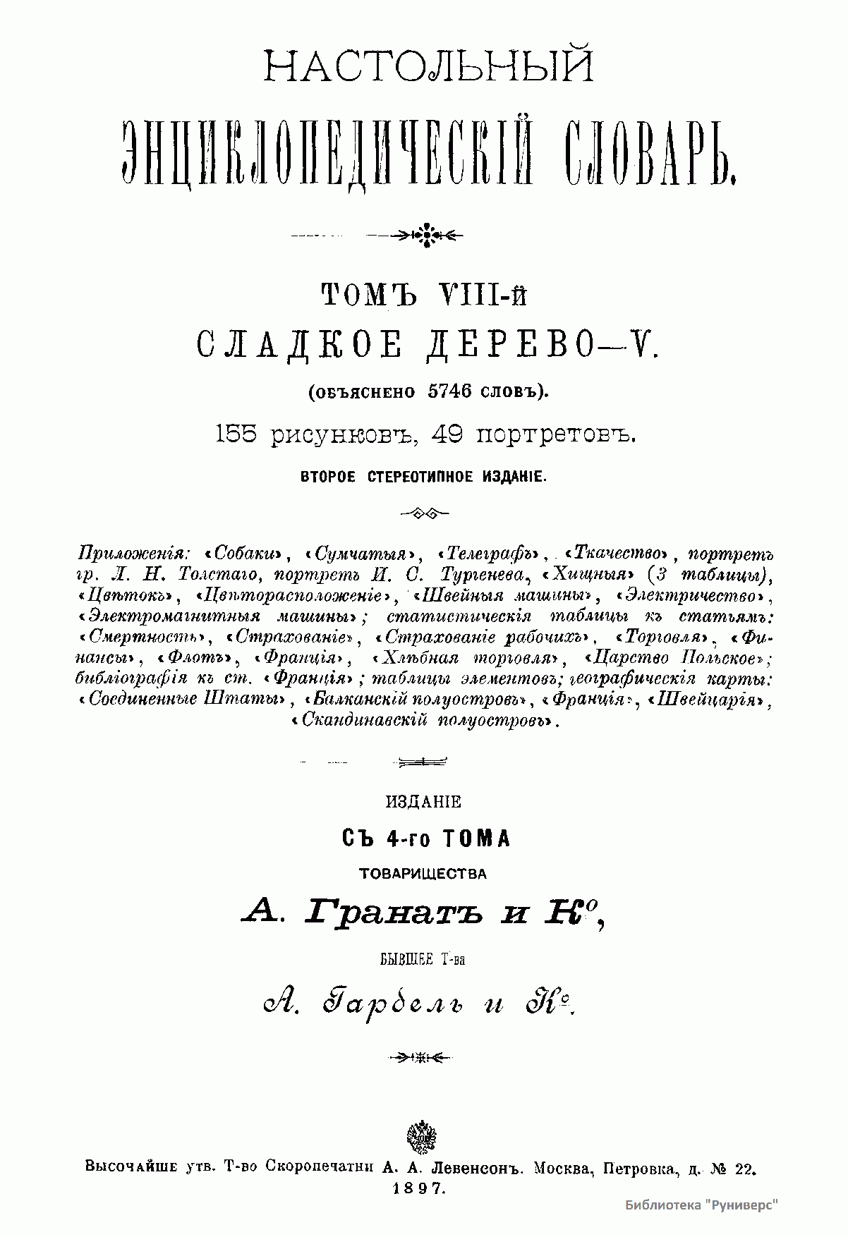 Настольный энциклопедическiй словарь. Томъ VIII-й. Сладкое дерево-V