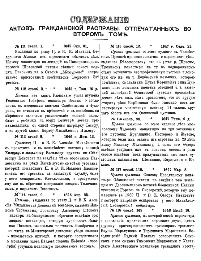 Собрание редчайших документов, составленное в 1860-1863 гг. А. Федотовым-Чеховским, ординарным профессором по кафедре гражданского права в университете св. Владимира в Киеве. Содержит акты, регулирующих главным образом древнерусское судопроизводство, а также сведения о феодальном землевладении, организации государственного управления, списки представителей государственной администрации. Включает правые, жалованные, разъезжие, деловые и др. грамоты.