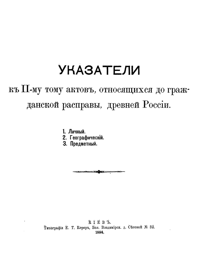 Акты, относящиеся до гражданской расправы Древней России. Указатели к 2-му тому.