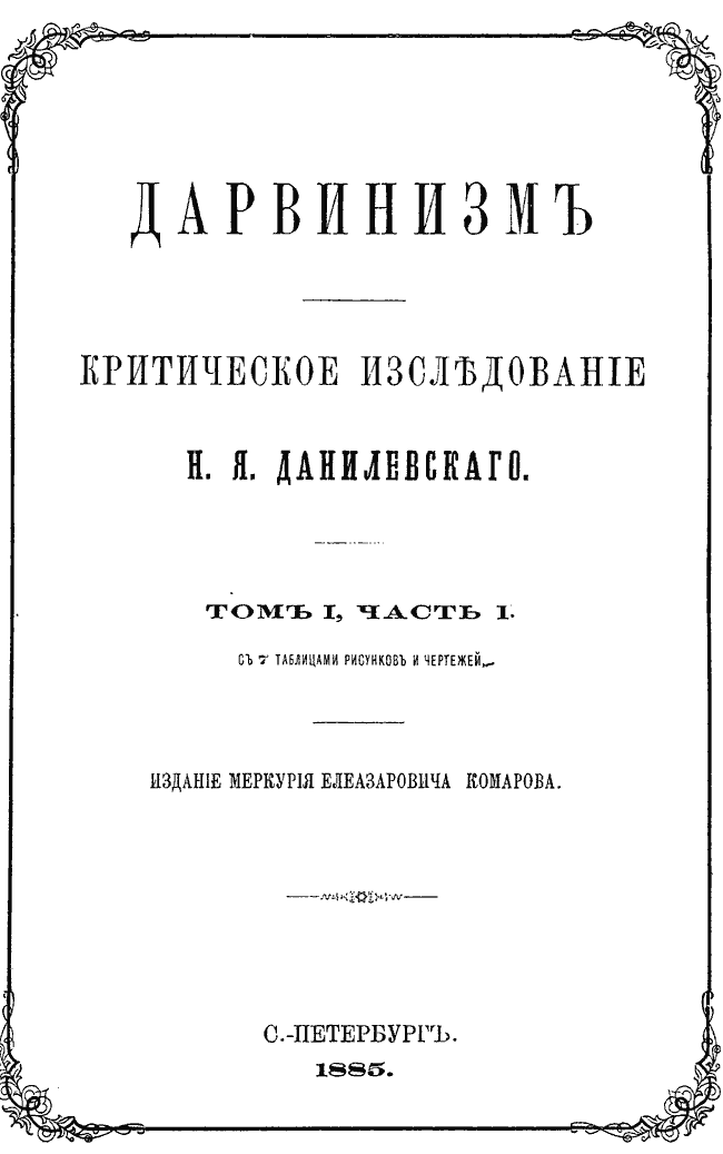 ДАРВИНИЗМ. Критическое исследование Н. Я Данилевского. СПБ. 1885