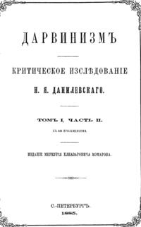 Публицист, социолог, идеолог панславизма в своем трехтомном труде "Дарвинизм. Критическое исследование" (1885 г.) Н.Я. Данилевский собрал воедино возражения, высказанные против дарвинизма за четверть века его существования, и изложил собственные взгляды на эволюцию органических форм.