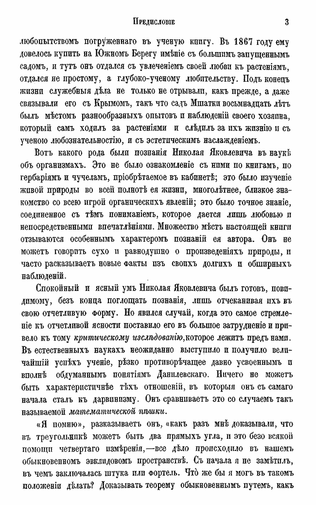 Публицист, социолог, идеолог панславизма в своем трехтомном труде "Дарвинизм. Критическое исследование" (1885 г.) Н.Я. Данилевский собрал воедино возражения, высказанные против дарвинизма за четверть века его существования, и изложил собственные взгляды на эволюцию органических форм.