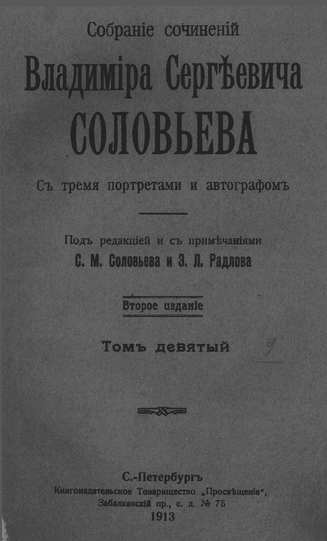 Собрание сочинений Владимира Сергеевича Соловьева. Том IX