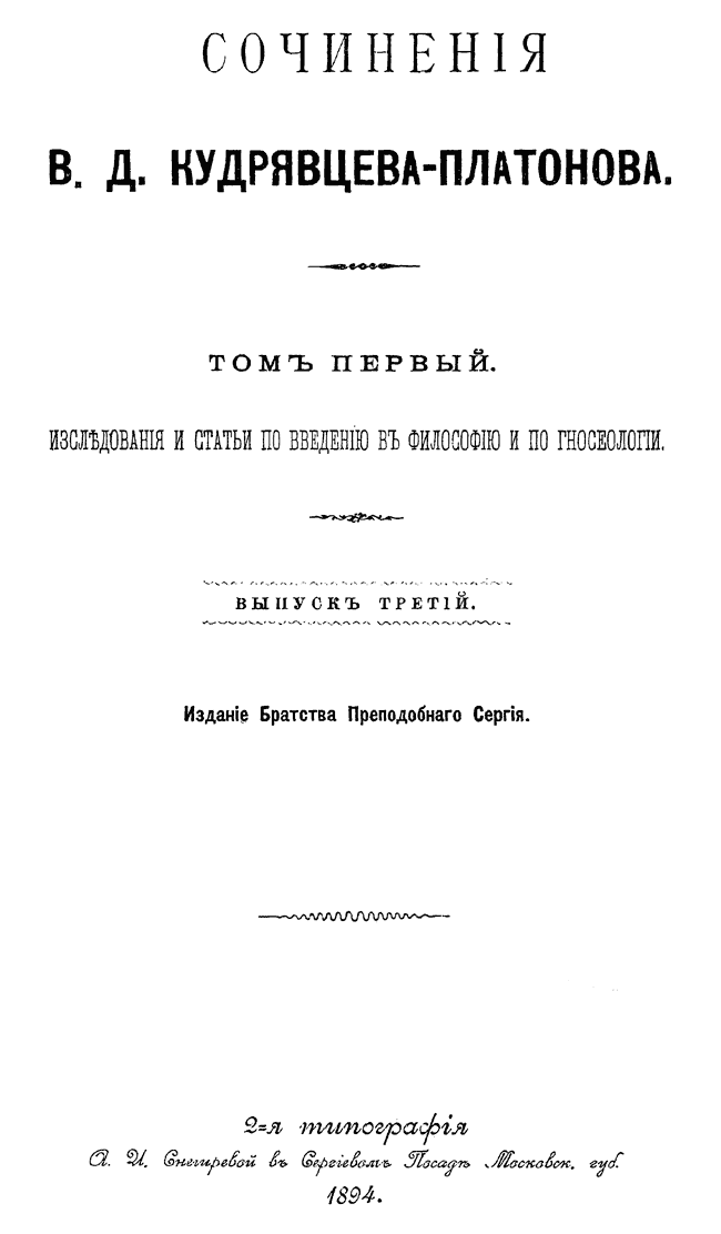 Сочинения В.Д. Кудрявцева-Платонова. Том I. Выпуск 3.