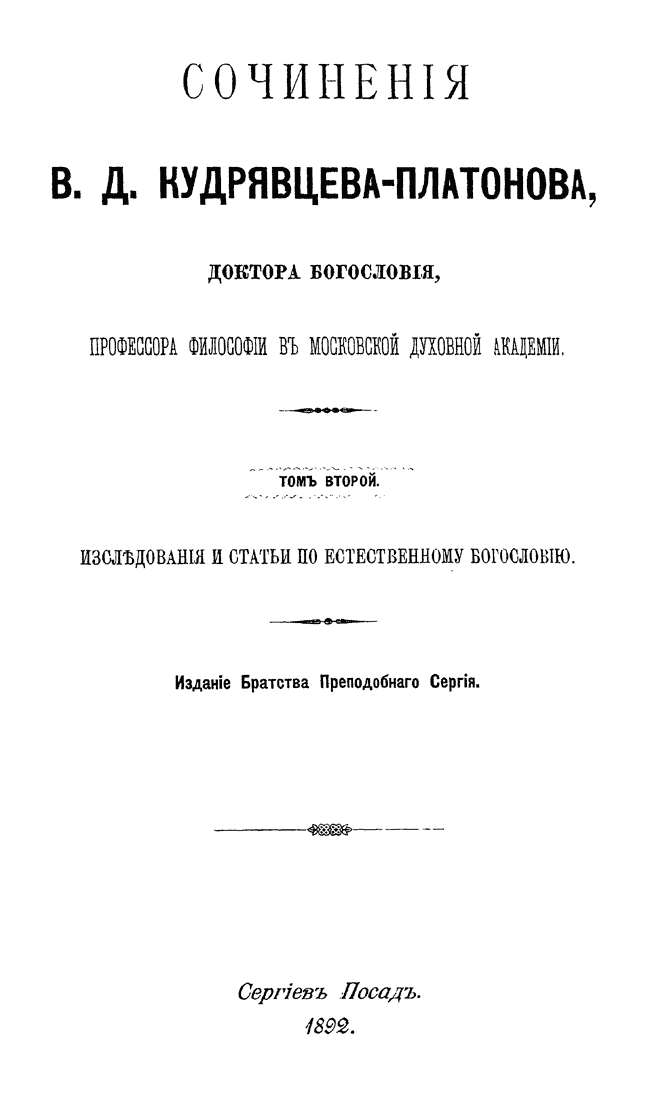 Сочинения В.Д. Кудрявцева-Платонова. Том II. Выпуск 1.