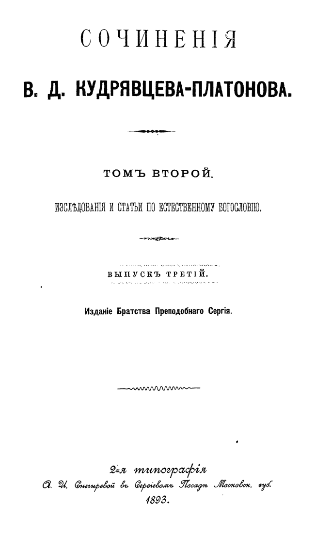 Сочинения В.Д. Кудрявцева-Платонова. Том II. Выпуск 3.