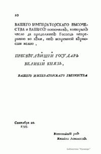 Русская литература и язык XVIII века развивались под влиянием изменений, которые внесли в общественно-политическую и культурную жизнь Империи реформы Петра Великого. У истоков преобразования русского языка и художественной литературы этой эпохи высится исполинская фигура М.В. Ломоносова. Ему принадлежит учение о трех стилях, суть которого заключается в том, что устаревшая система церковно-книжной речи тормозила развитие как литературы, так и общества в целом. Поэтому представленная «Российская грамматика» М. В. Ломоносова является одним из главных сочинений ученого. Фактически Ломоносов явился создателем первой научной русской грамматики, заложившей основы отечественной филологии. При исследовании русского языка ученый-реформатор впервые применил строгие научные приемы и четко систематизировал материал своего учебника. Содержание книги делится на шесть наставлений: о человеческом слове вообще, о чтении и правописании российском, о родах имен и склонениях, о спряжении глаголов, о служебных частях речи, и, наконец, о сочинении частей слова. Первое упоминание о начале работы над «Российской грамматикой» относится к 1749 году. Основная работа приходится на 1754 год, а 20 сентября 1755 г. в первую годовщину рождения сына Петра Федоровича и Екатерины Алексеевны (будущей Екатерины Великой) рукопись «Грамматики» была торжественно поднесена Ломоносовым младенцу великому князю Павлу Петровичу. Это выдающееся произведение российской филологии было отпечатано в январе 1757 г. в Петербурге и затем выдержало подряд пять изданий. В своем авторском предисловии «всенижайший раб Михайло Ломоносов», обращаясь к будущему наследнику престола, которого императрица Елизавета Петровна стремилась видеть на троне, образно отмечал: «Повелитель многих языков язык российский не токмо обширностию мест, где он господствует, но купно и собственным своим пространством и довольствием велик перед всеми в Европе. Карл Пятый, римский император, говаривал, что ишпанским языком с Богом, французским с друзьями, немецким с неприятельми, италиянским с женским полом говорить прилично. Но если бы он российскому языку был искусен; то, конечно, к тому присовокупил бы, что им со всеми оными говорить пристойно ибо нашел бы в нем великолепие ишпанского, живость французского, крепость немецкого, нежность италиянского, сверх того богатство и сильную в изображениях краткость греческого и латинского языка». Ломоносов как подлинный сын эпохи Просвещения, ориентировался на древних авторов и на французские грамматические руководства. Основой же послужила «Грамматика» Мелентия Смотрицкого, откуда был заимствован ряд определений. Однако для того времени в труде Ломоносова было много оригинального. Эта книга впервые проводит резкую грань между языками русским и церковно-славянским, между речью разговорной и «славенщизной». Признавая близкую взаимосвязь обоих языков, Ломоносов устанавливает полную самостоятельность каждого из них и впервые подвергает специальному строго научному изучению законы и формы языка собственно русского. Впервые определенно и точно наметив отношения русского литературного языка к языку церковно-славянскому, с одной стороны, и к языку живой, устной речи, с другой, он положил прочное начало преобразованию русского литературного языка, кот