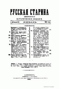 «Русская старина», ежемесячный исторический журнал, выходил в Петербурге в 1870-1918. Основан, издавался и редактировался (1870-1892) М. И. Семевским при участии В. И. Семевского. Последующими редакторами были Н. К. Шильдер (1892-1896), Н. Ф. Дубровин (1896-1904), военные историки С. П. Зыков, П. Н. Воронов.