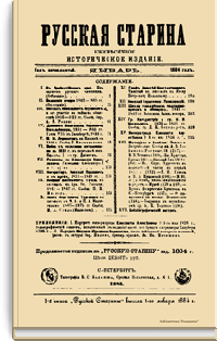 «Русская старина», ежемесячный исторический журнал, выходил в Петербурге в 1870-1918. Основан, издавался и редактировался (1870-1892) М. И. Семевским при участии В. И. Семевского. Последующими редакторами были Н. К. Шильдер (1892-1896), Н. Ф. Дубровин (1896-1904), военные историки С. П. Зыков, П. Н. Воронов.