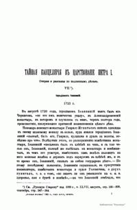 «Русская старина», ежемесячный исторический журнал, выходил в Петербурге в 1870-1918. Основан, издавался и редактировался (1870-1892) М. И. Семевским при участии В. И. Семевского. Последующими редакторами были Н. К. Шильдер (1892-1896), Н. Ф. Дубровин (1896-1904), военные историки С. П. Зыков, П. Н. Воронов.
