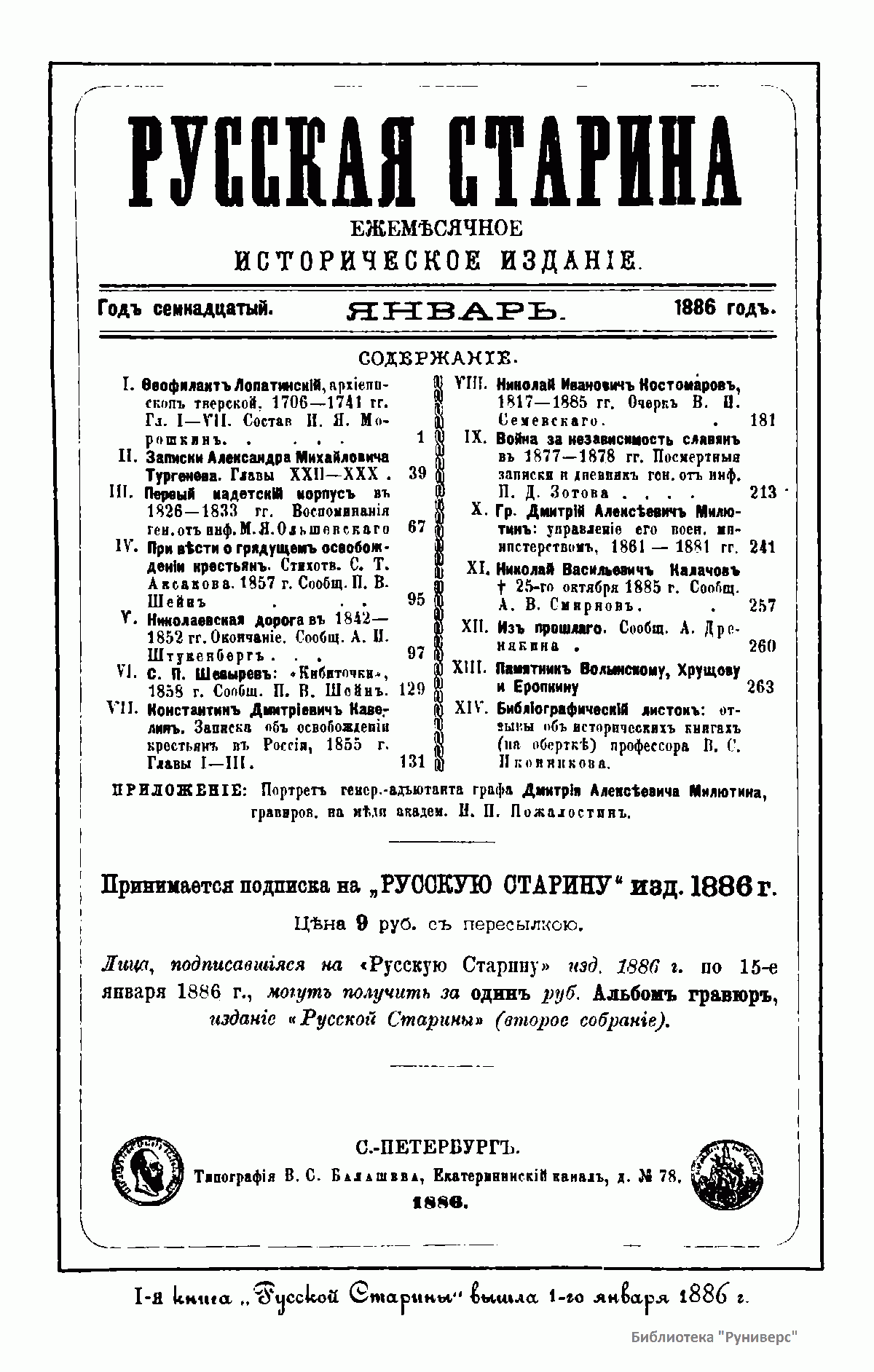 Русская cтарина. Томъ XLX-L. 1886. Выпуски 1-4