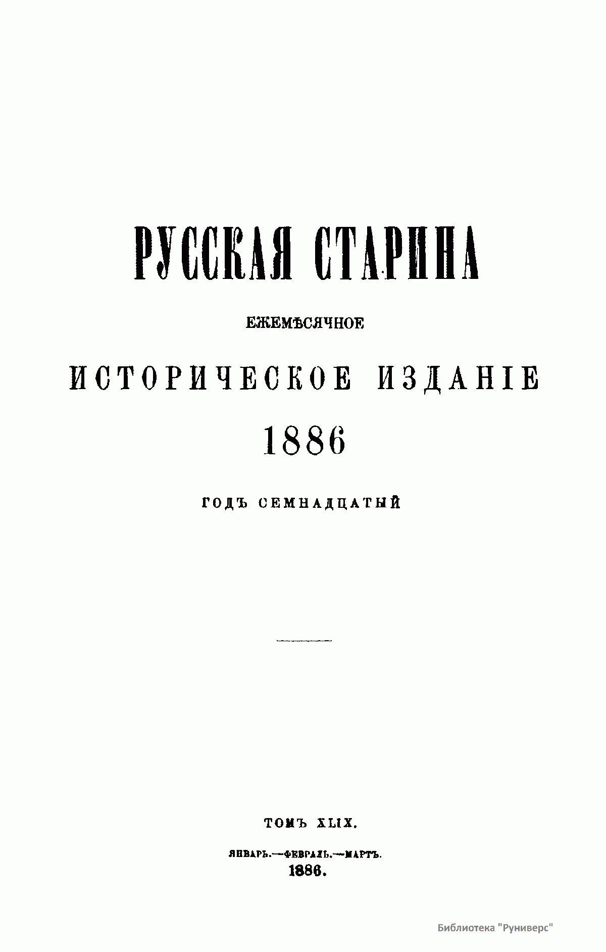 Русская cтарина. Том XLIX-L. 1886. Выпуски 1-4