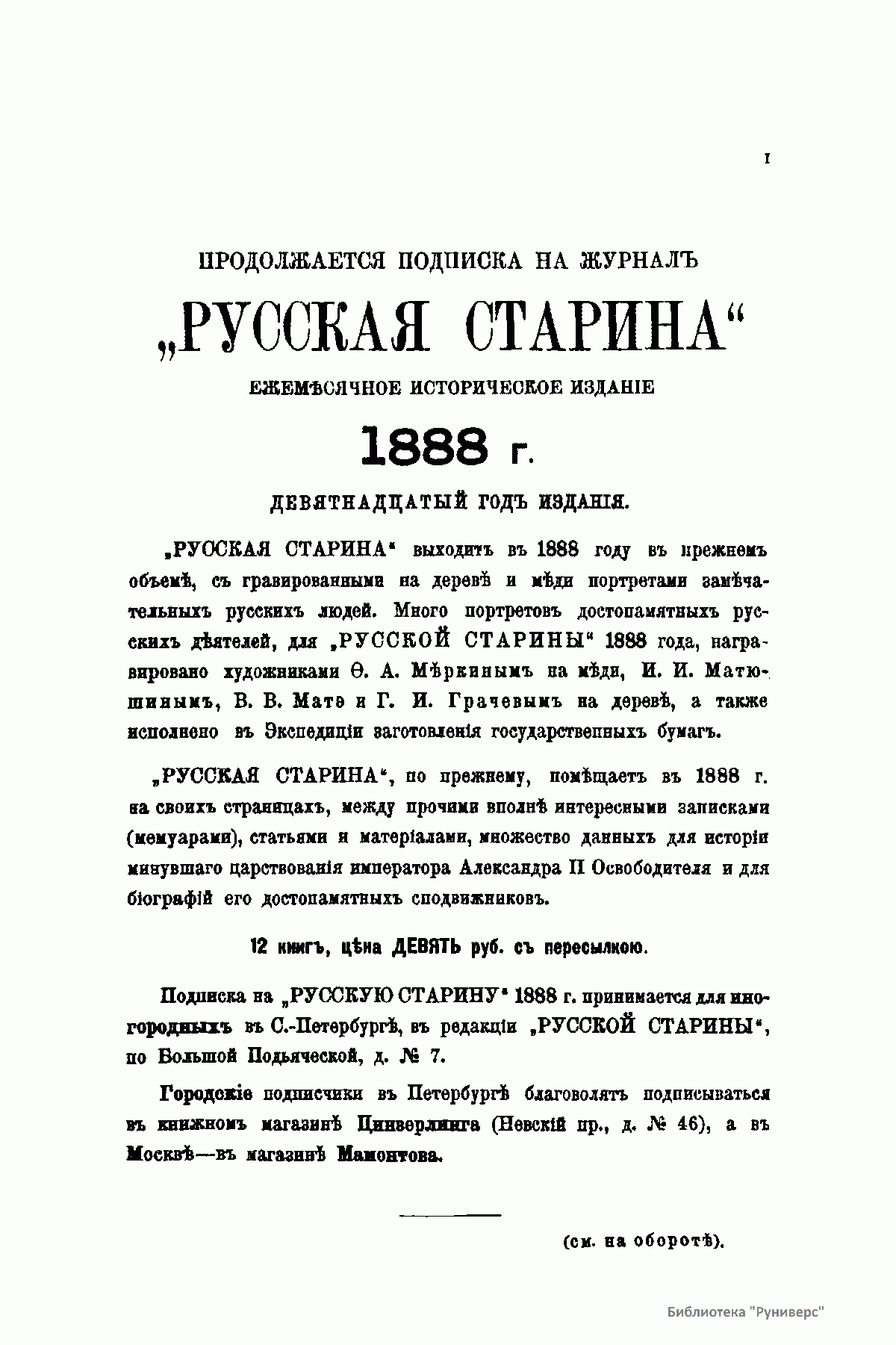 Русская cтарина. Том LVII. 1888. Выпуски 1-3