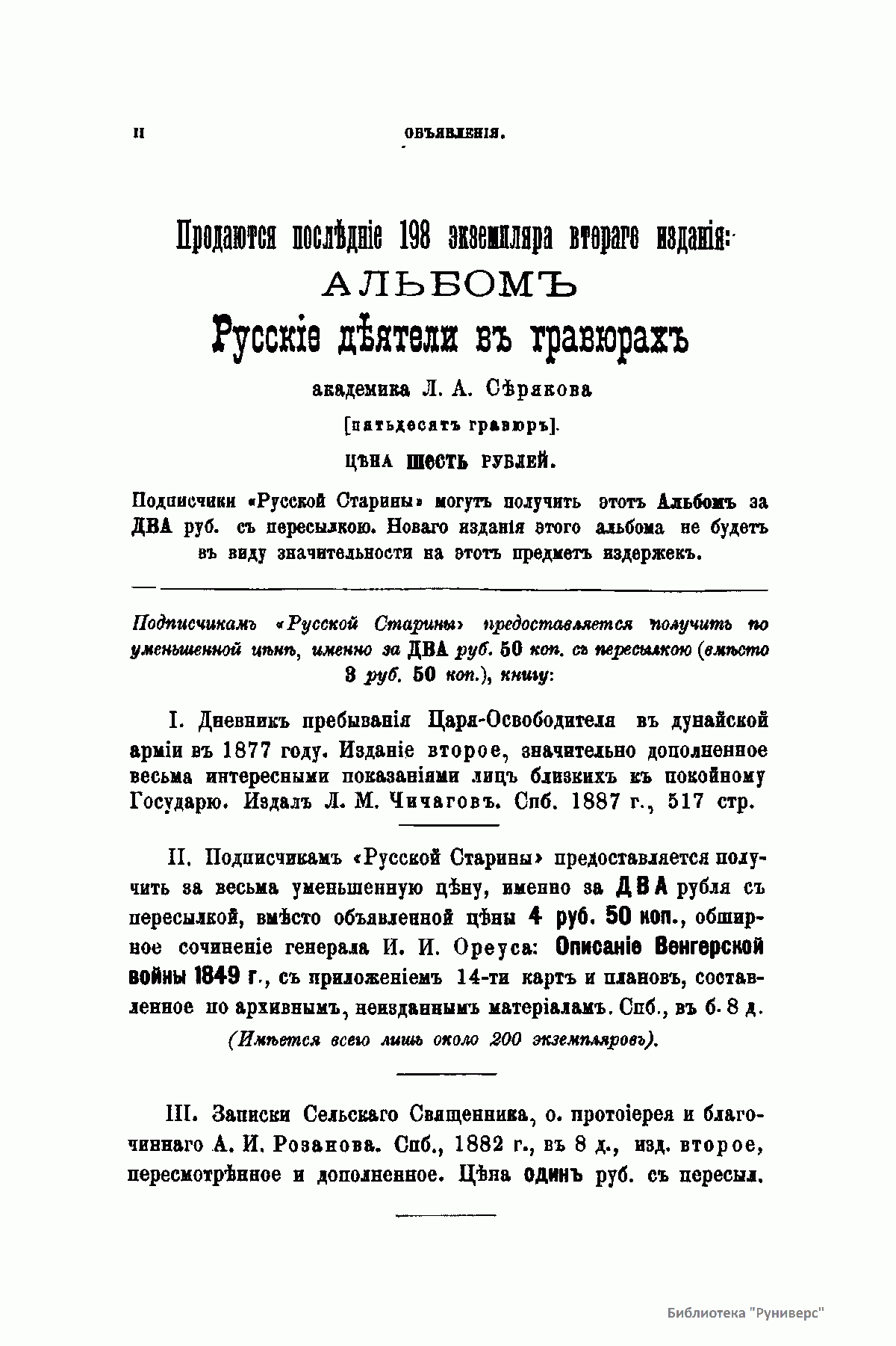 Крупным вкладом в журнал явились записки и дневник А. В. Никитенко (1888-1892), а также записки Н. И. Пирогова (1884-1885, 1887).