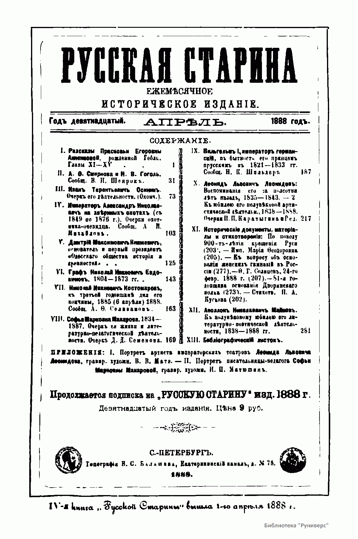 Русская cтарина. Том LVIII. 1888. Выпуски 4-6