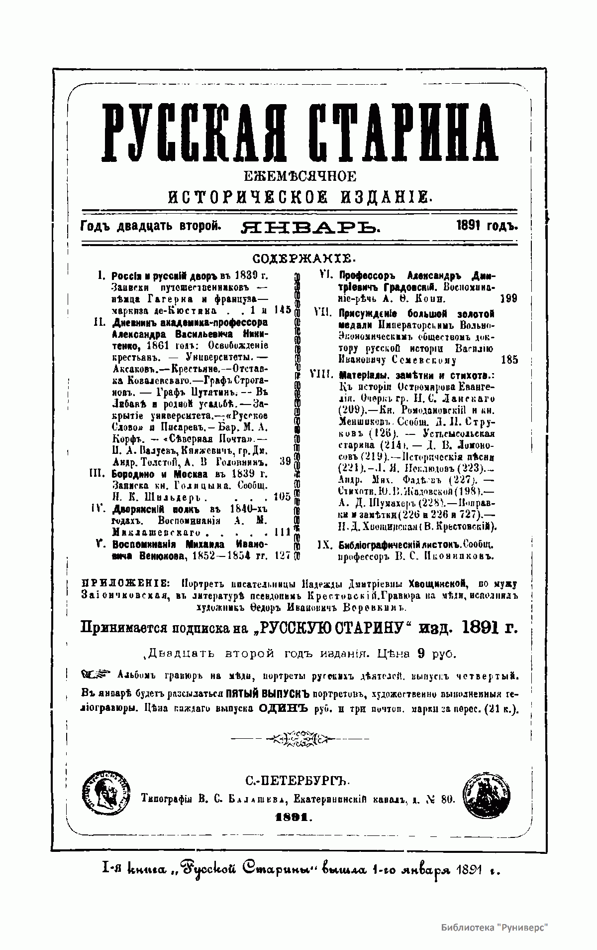 Русская cтарина. Том LXIX. 1891. Выпуски 1-3