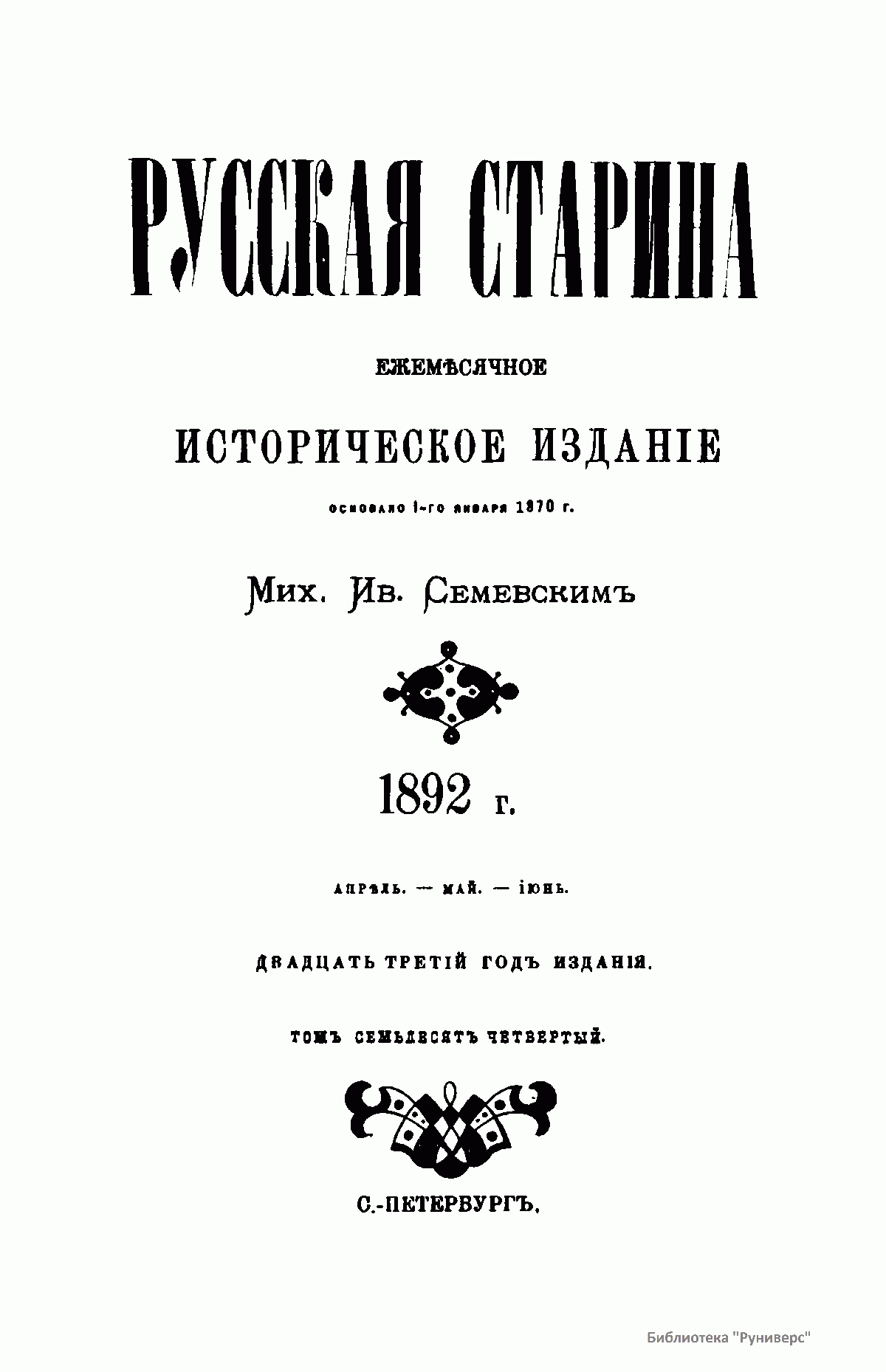 Русская cтарина. Томъ LXXIV. 1892. Выпуски 4-6