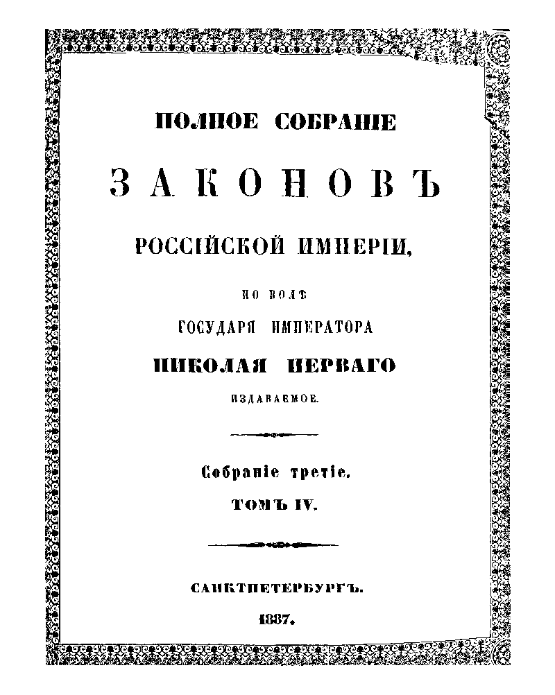 Полное собрание законов Российской Империи. Собрание Третье. Том IV