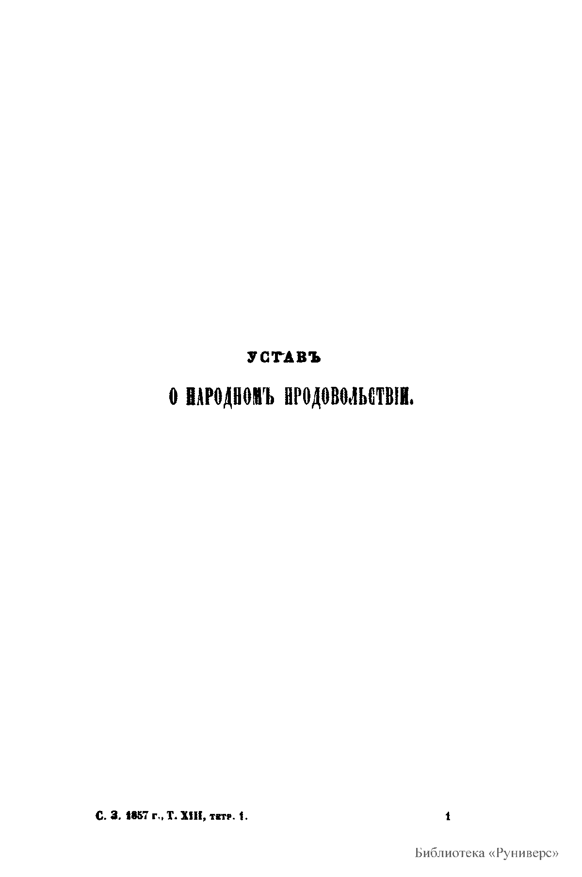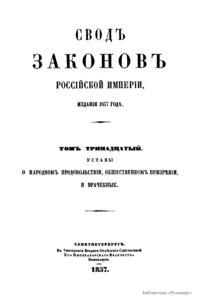 Сводъ законовъ Россiйской имперiи. Томъ тринадцатый. Уставы о народномъ продовольствiи, общественномъ призрѣнiи, и врачебные