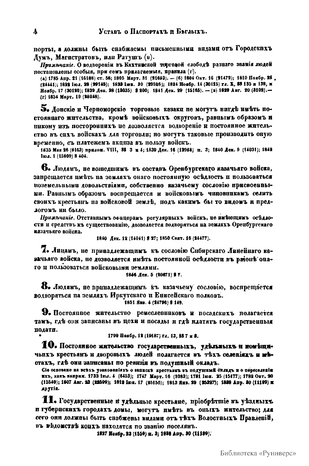 Сводъ законовъ Россiйской имперiи. Томъ четырнадцатый. Уставы о паспортахъ, о предупрежденiи преступленiй, о цензурѣ, о содержащихся подъ стражею, и о ссыльныхъ