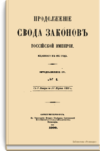 Продолжение свода законов Российской империи, изданного в 1857 году. Продолжение №IV. №1. С 1 января по 31 марта 1860 года