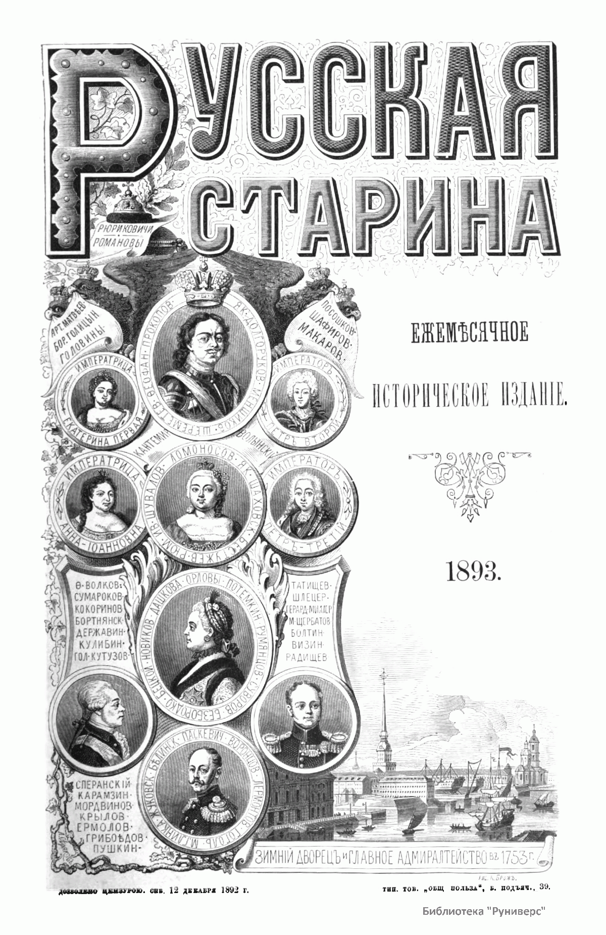 Русская старина. Том LXXVII. 1893. Выпуски 1-3