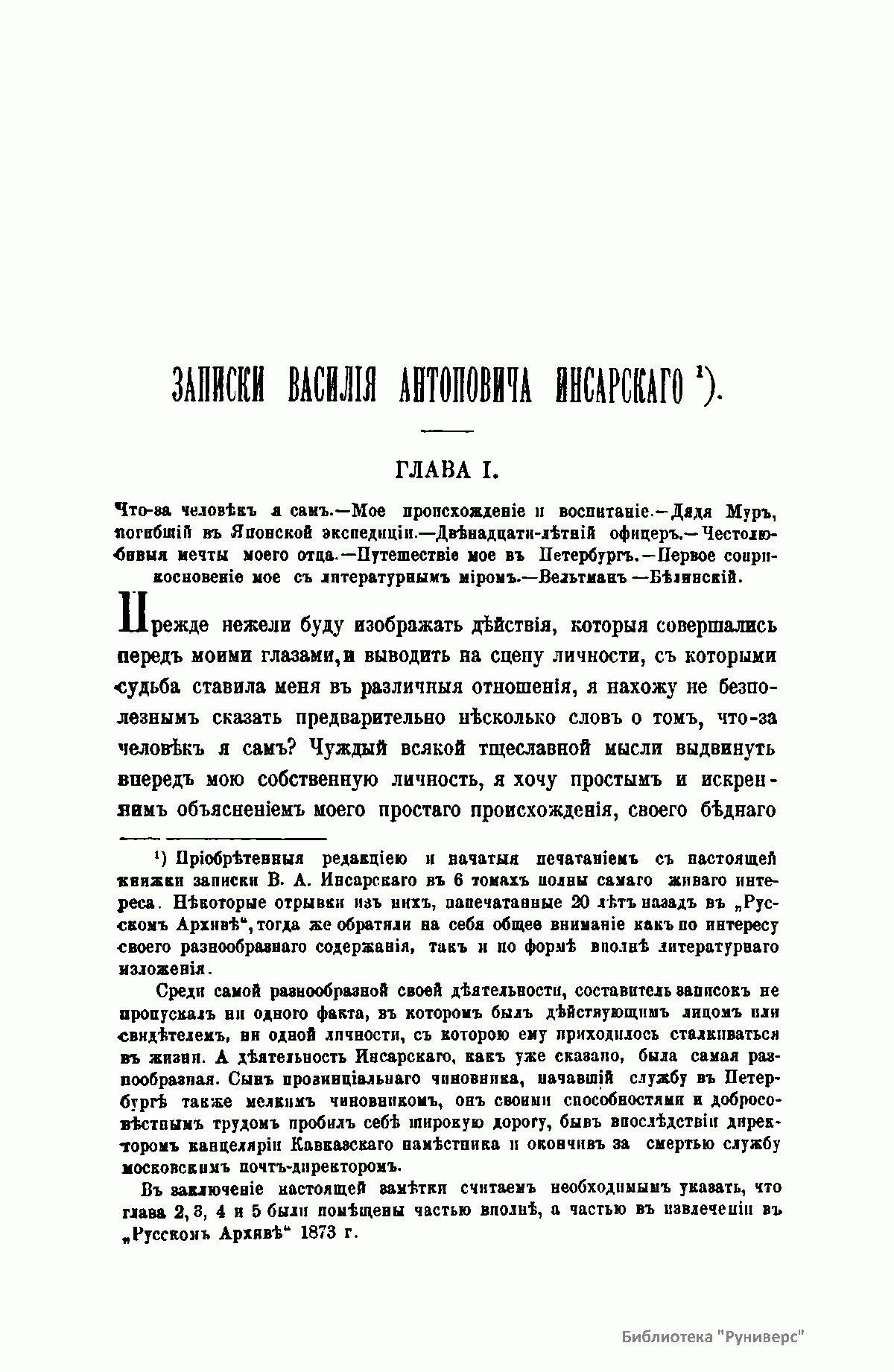 Крупным вкладом в журнал явились записки и дневник А. В. Никитенко (1888-1892), а также записки Н. И. Пирогова (1884-1885, 1887).