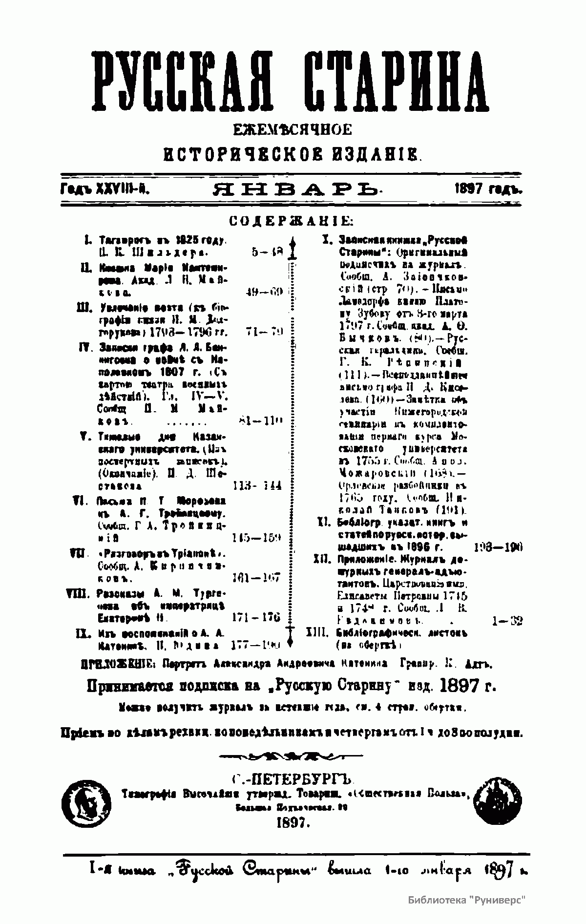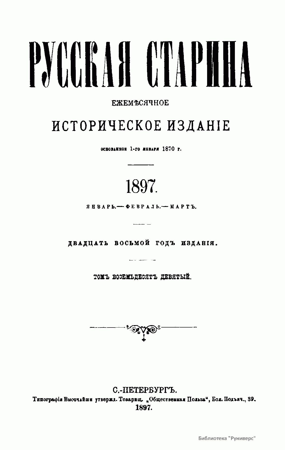 Русская старина. Томъ LXXXIX. 1897. Выпуски 1-3