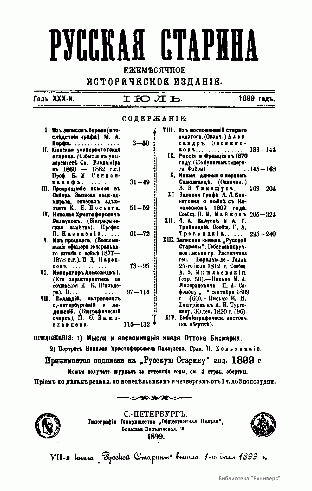 Русская старина. Томъ XCIX. 1899. Выпуски 7-9