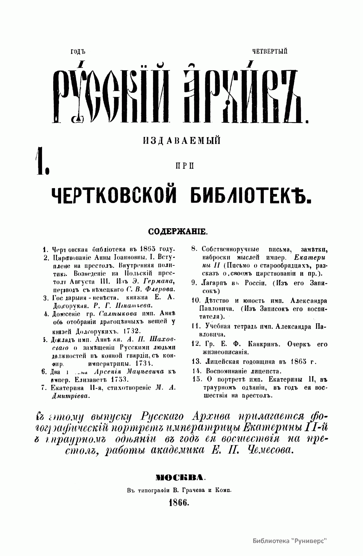 Русский архив. Историко-литературный сборник. 1866. Выпуски 1-6