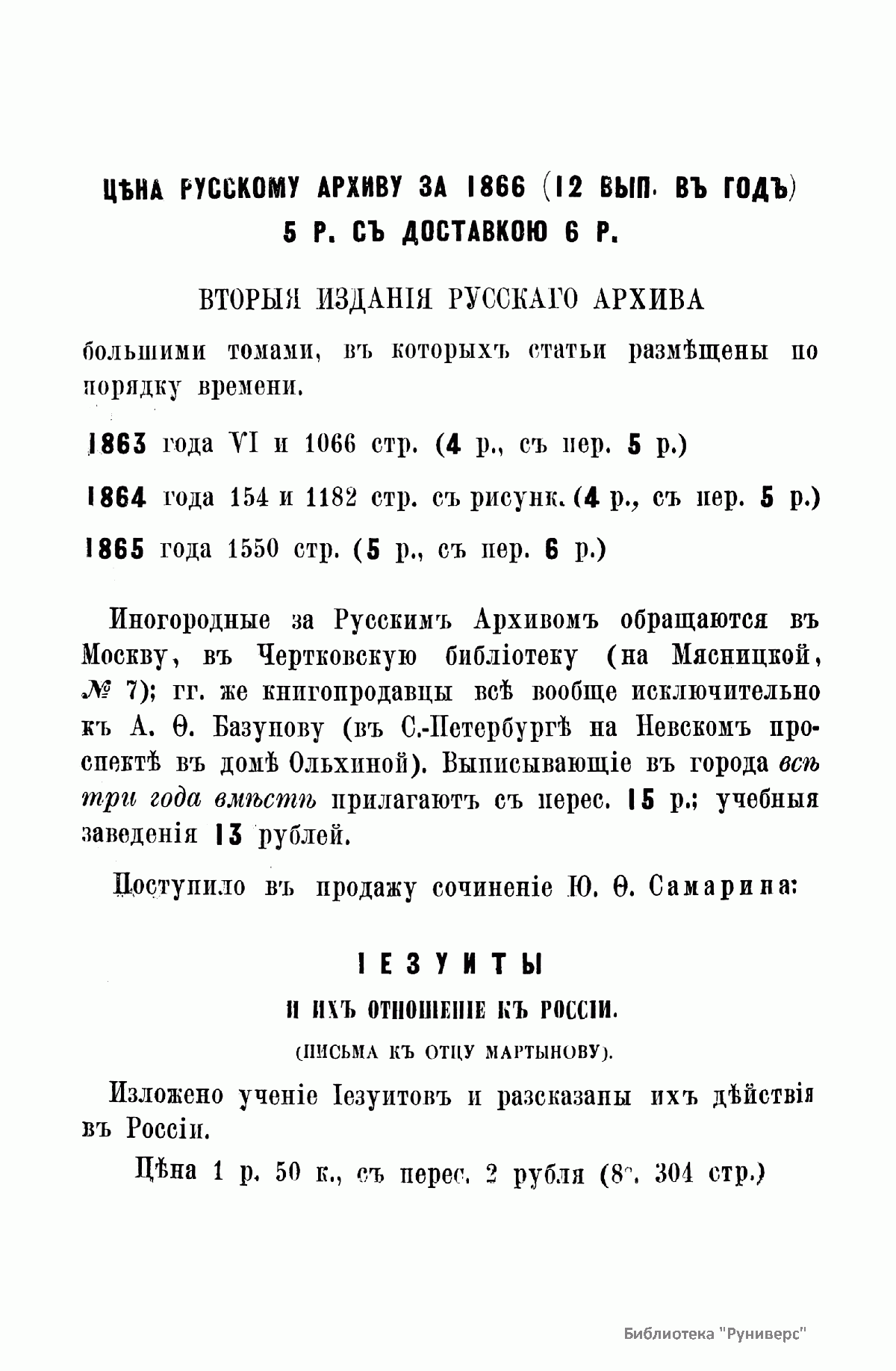 Русский архив. Историко-литературный сборник. 1866. Выпуски 7-12