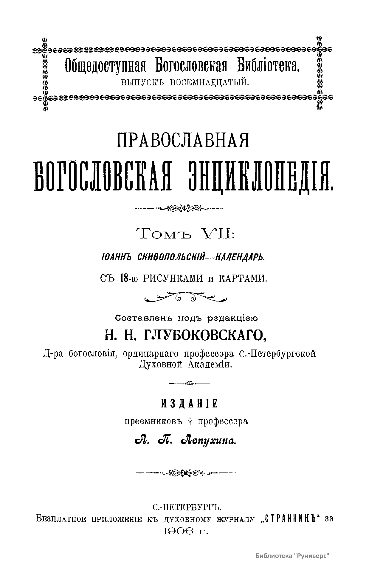 Православная богословская энциклопедiя. Томъ VII. Иоаннъ Скиѳопольскiй - Календарь