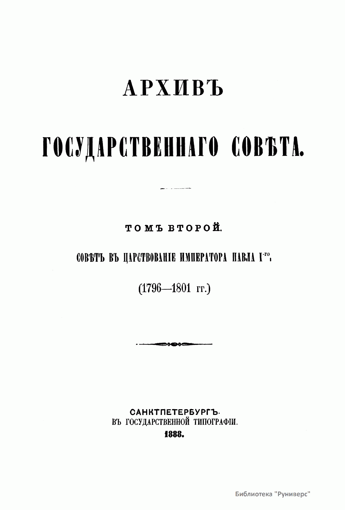 Архивъ Государственнаго совѣта. Томъ второй. Совѣтъ въ царствованiе императора Павла I. 1796-1801 гг.